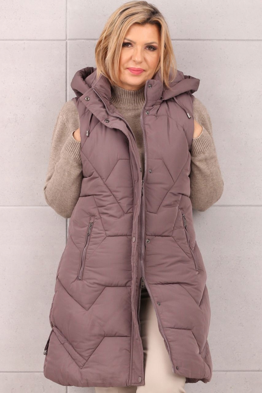 Цей сучасний довгий стьобаний жилет — справжня перлина у світі моди. Його різноманітне стьобання не тільки створює ефектний візерунок, але й делікатно струнює фігуру, надаючи їй витонченості та стрункості. Ця жилетка є ідеальним вибором для холодних днів, забезпечуючи теплий комфорт без шкоди для стилю. Це одяг, який поєднує тепло з неперевершеною свободою рухів, створюючи ідеальний бар’єр від холоду.
