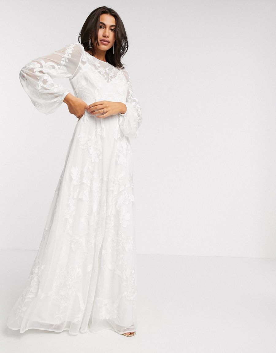 ДОВГА ЖІНОЧА ВЕСІЛЬНА СУКНЯ З МЕРЕЖИВОМ КОНТАКТУ СЛОНОВОЇ КІСТІ