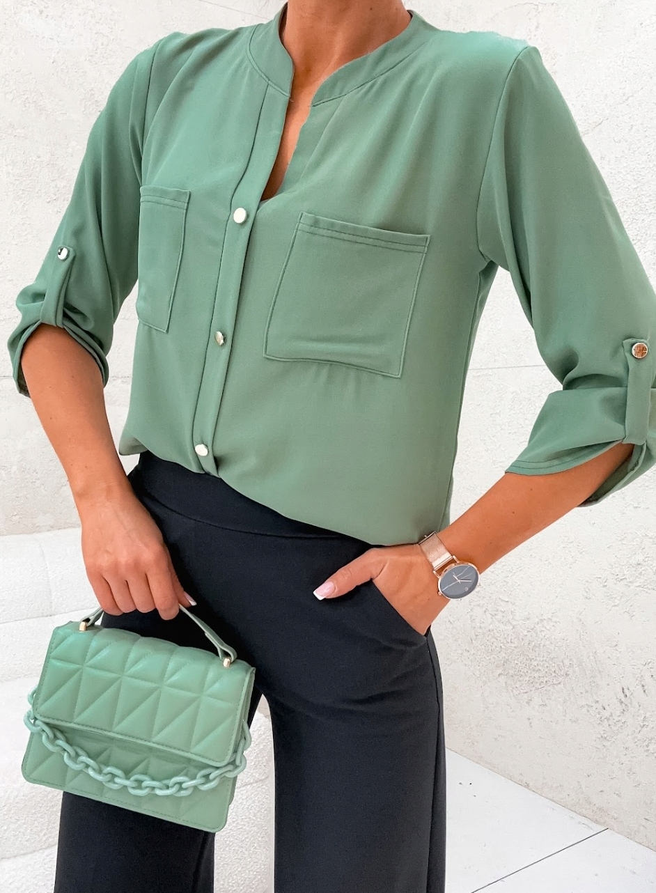 Класична елегантна блузка з декоративними ґудзиками спереду, на рукавах і кишенях, виріб красивих кольорів, ідеально підходить для багатьох повсякденних і випадкових укладок. Виріб має круглий виріз і неодмінно підійде до джинсів, брюк-сигарет або спідниці-олівець. Це однозначно верхня полиця в категорії блуз, польського виробника, який шиє з увагою до найменших деталей. Товар польський.