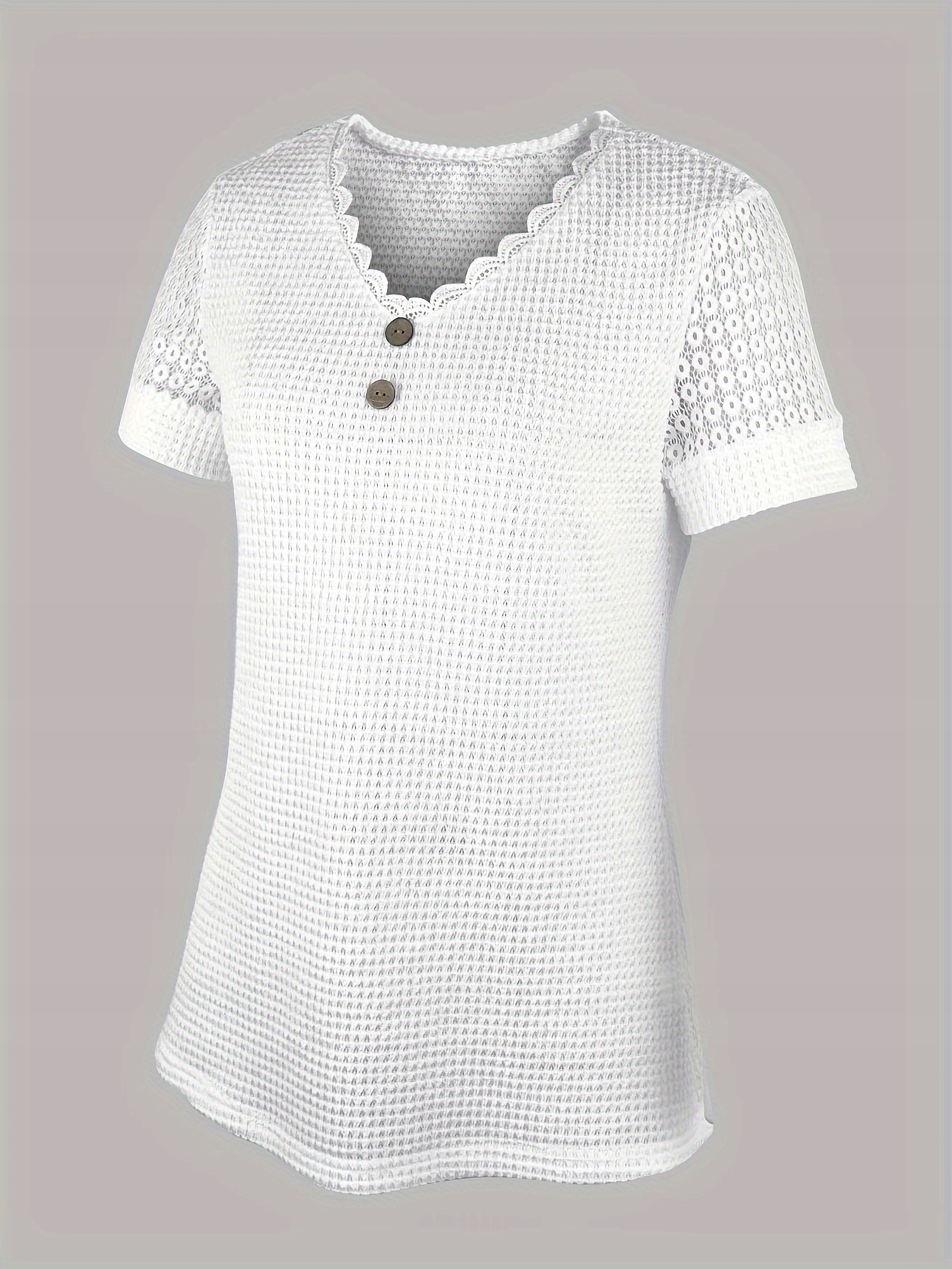 Жіноча ажурна мереживна блуза з короткими рукавами та V-подібним вирізом – це унікальний предмет одягу, який випромінює жіночу елегантність і тонкість.
