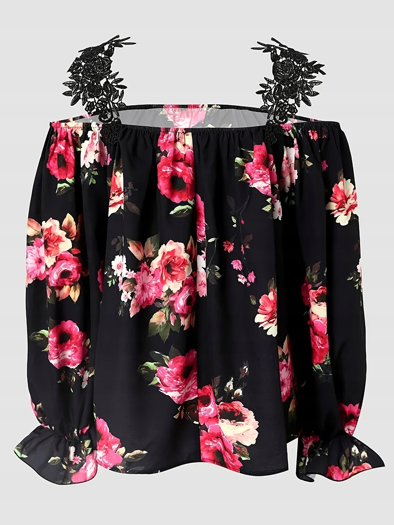 Іспанська квітчаста блуза з мереживними лямками — це витвір, який додає чарівності та краси кожній жінці.