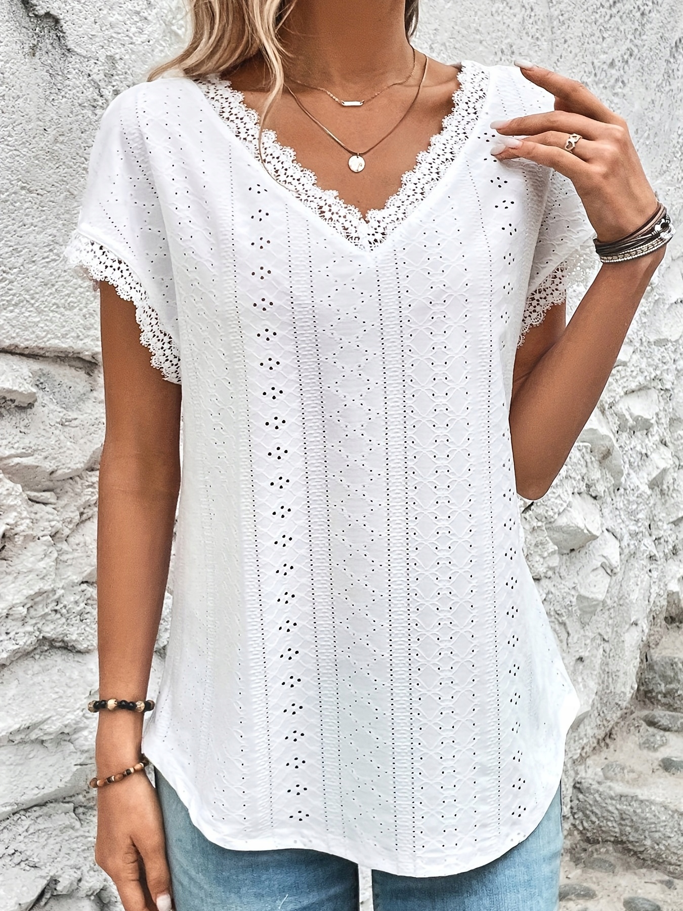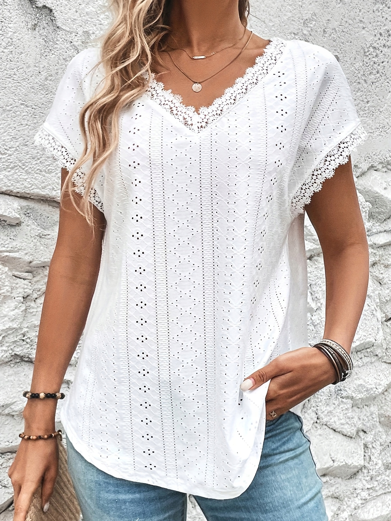 ЖІНОЧА ЕЛЕГАНТНА МЕРЕЖИВНА БЛУЗА З КОРОТКИМ РУКАВОМ