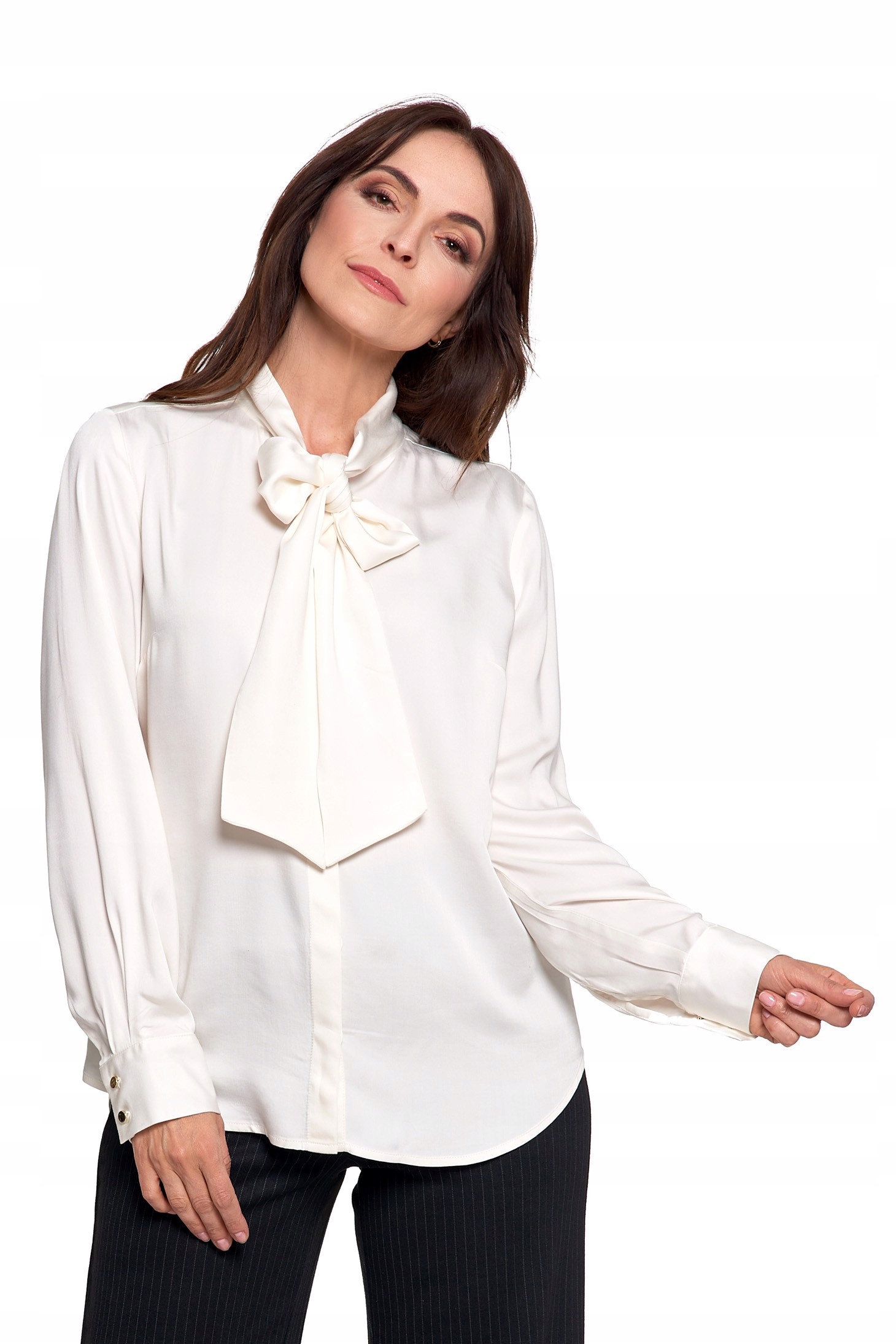ЕЛЕГАНТНА ЖІНОЧА СОРОЧКА, 100% ВІСКОЗА, З КОМІРОМ СТІЙКОЮ, ЗАВ'ЯЗАНИМ БАНТОМ, ГЛАДКА L