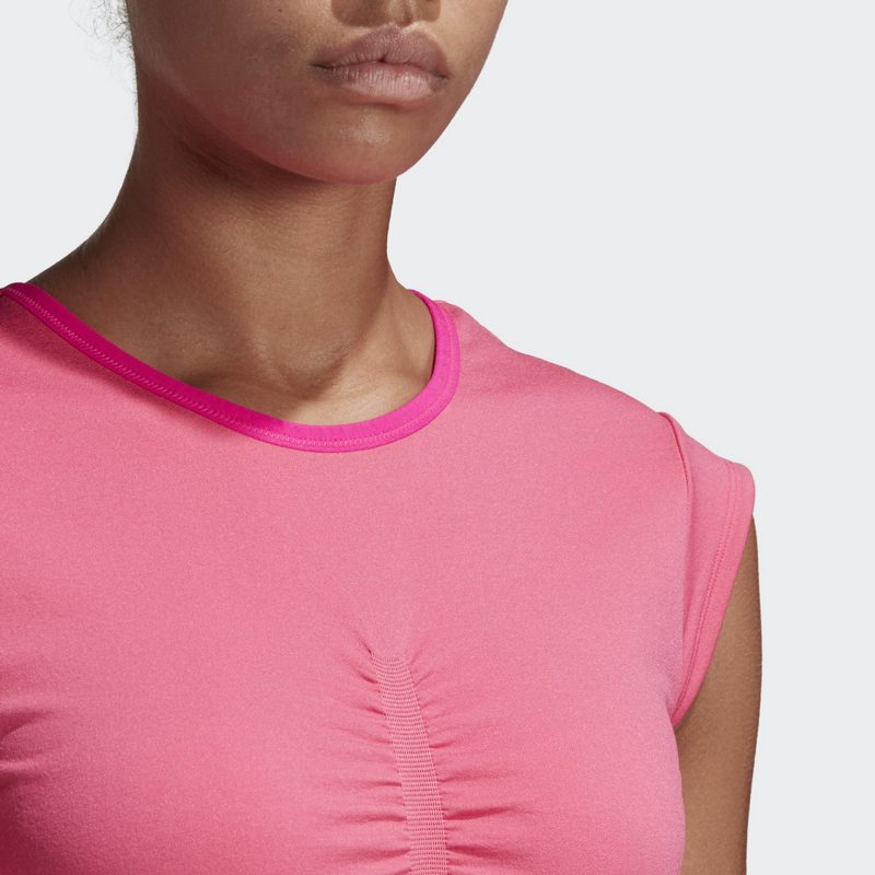 Жіноча футболка Adidas by Stella McCartney тенісне взуття від відомого дизайнера Stella McCartney. Злегка еластичний матеріал. Сітчасті вставки для кращої повітропроникності. Логотип Adidas і напис - Stella McCartney.