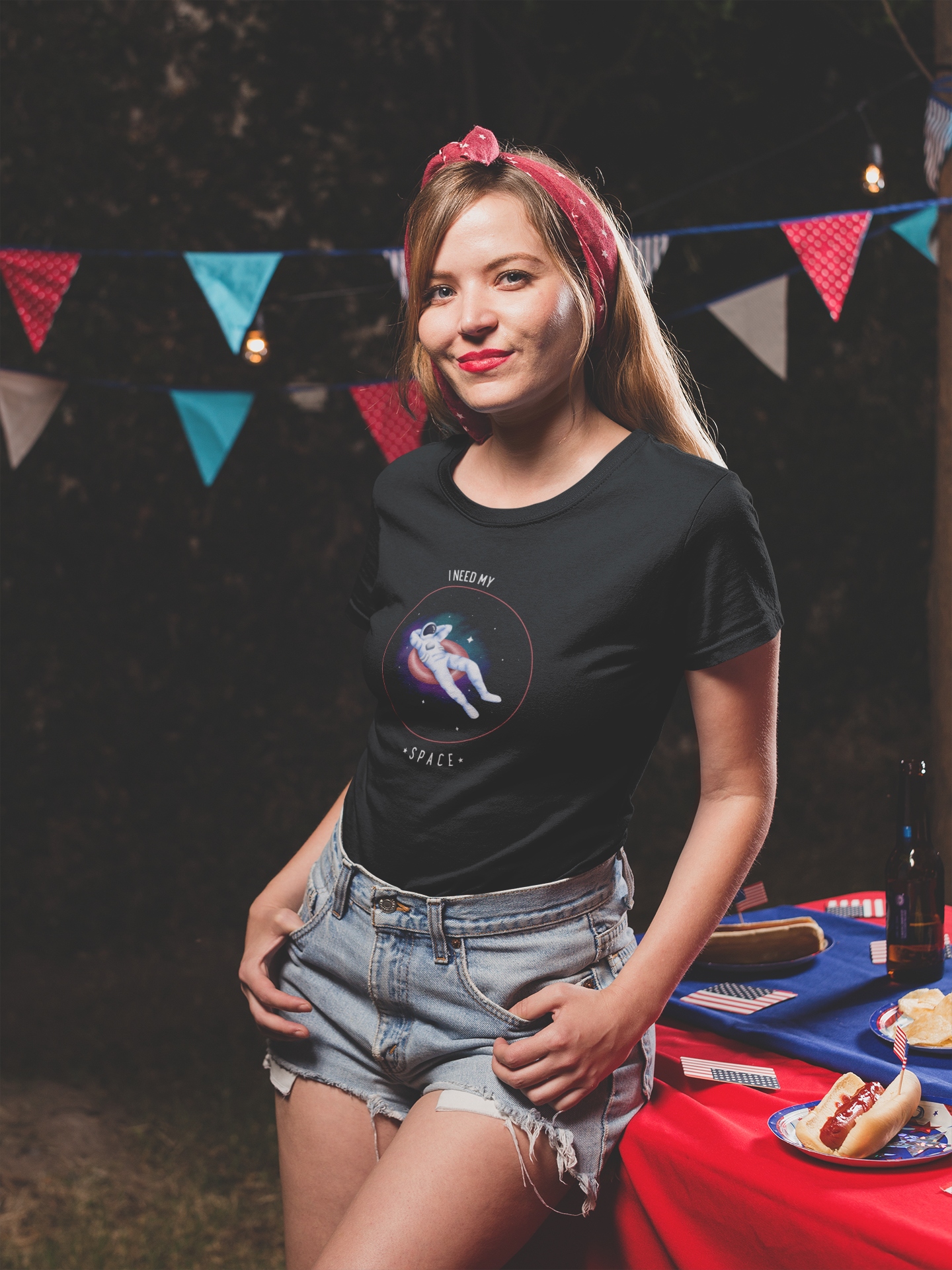 Жіноча футболка I NEED MY SPACE - Astronaut Relaxing in Space
