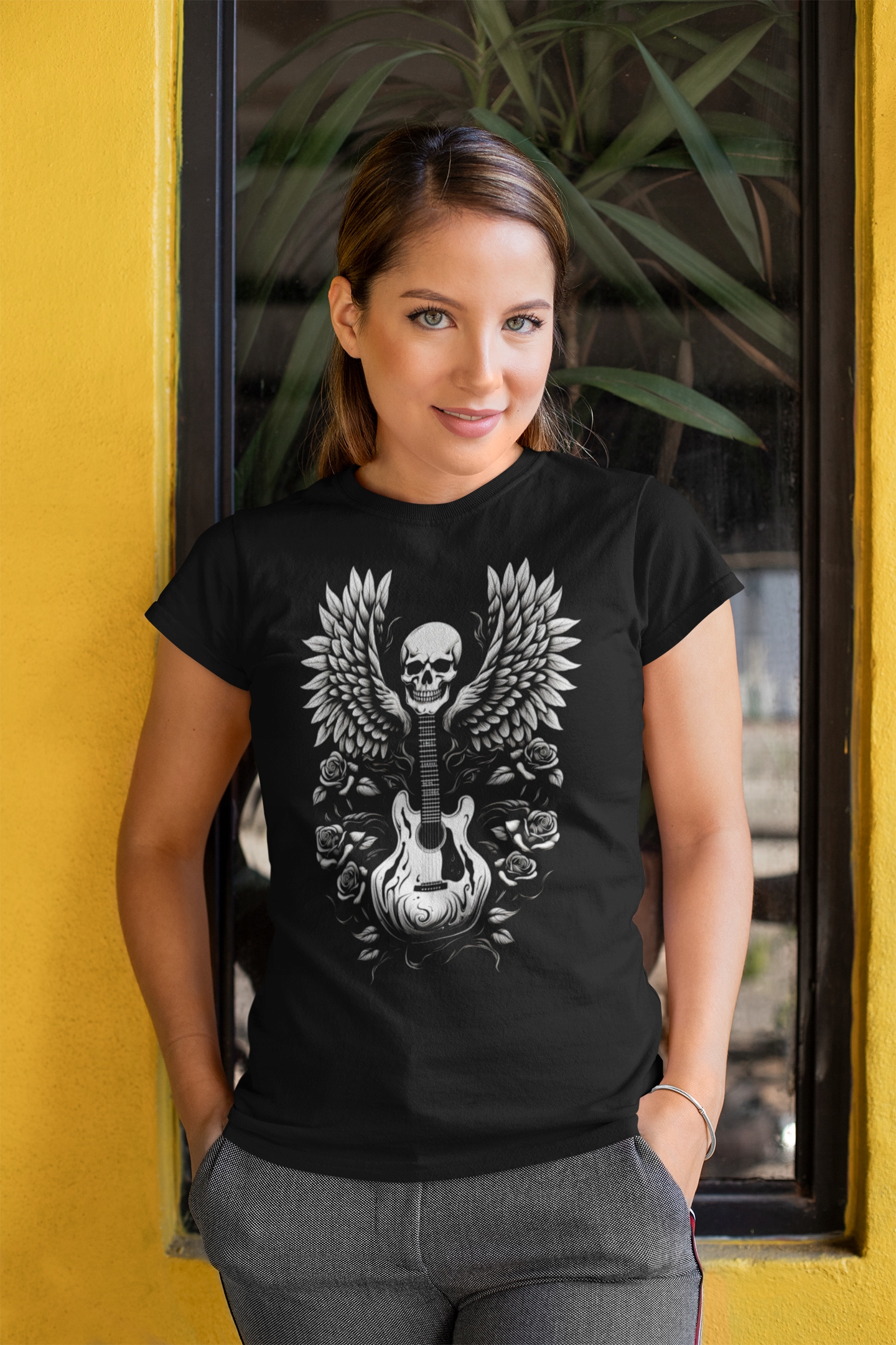 ЖІНОЧА ФУТБОЛКА ПІД РОК-МУЗИКУ З ГІТАРОЮ ТА ЧЕРЕПОМ