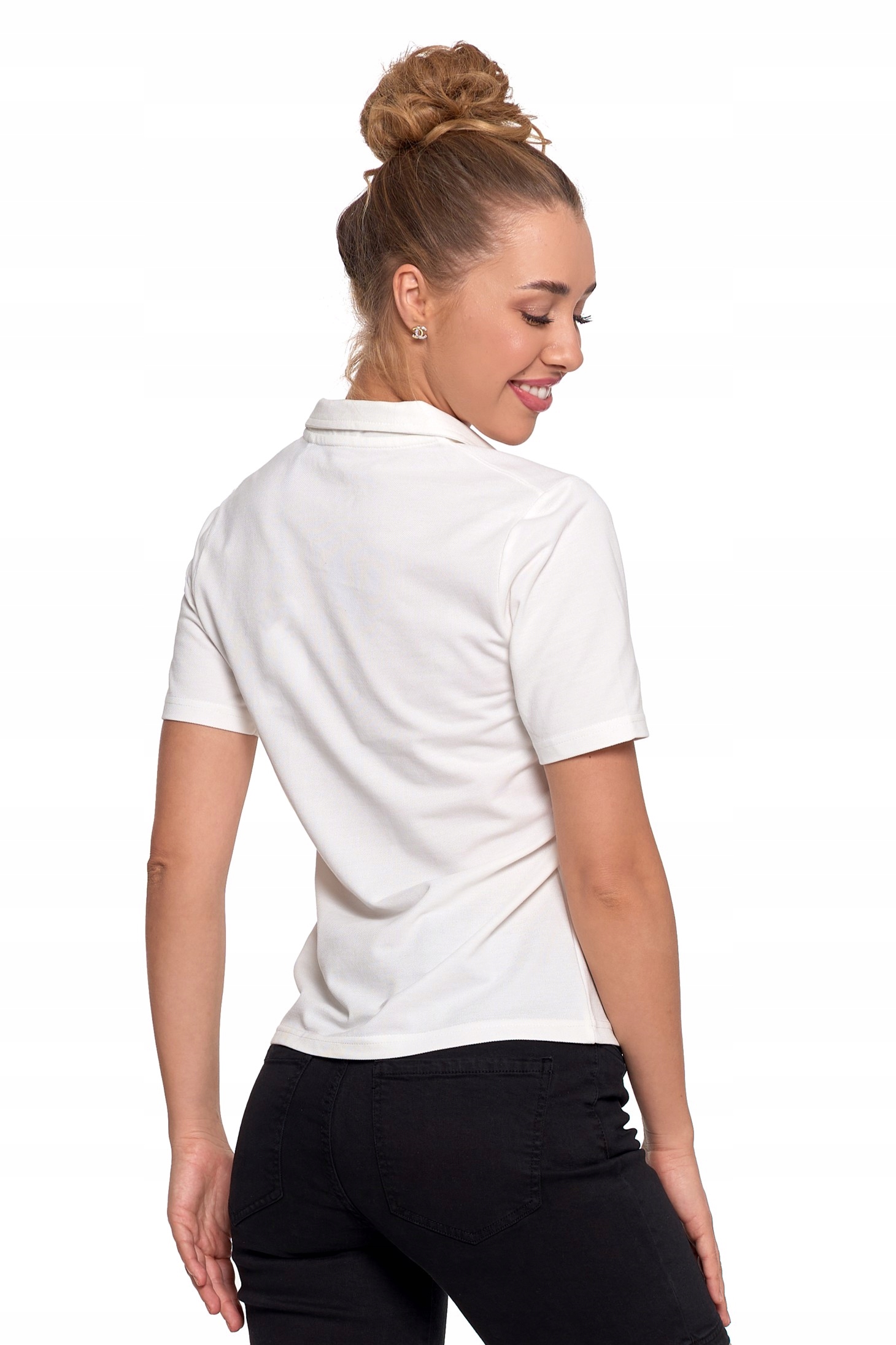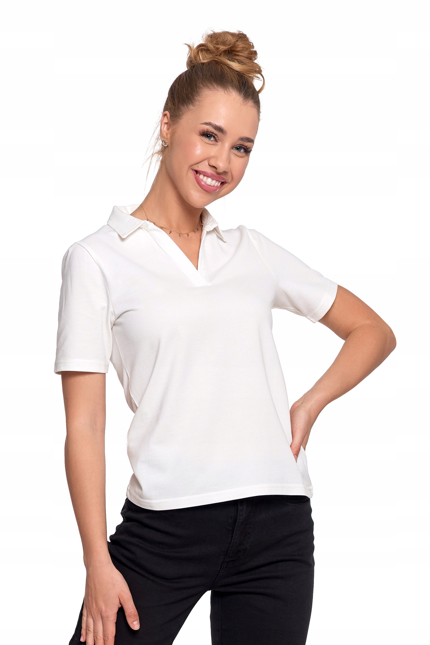 ЖІНОЧА БЛУЗА ПОЛО З КОМІРОМ МОРАДЖ, ОДНОТРАННА БАВОВНА, БІЛА M