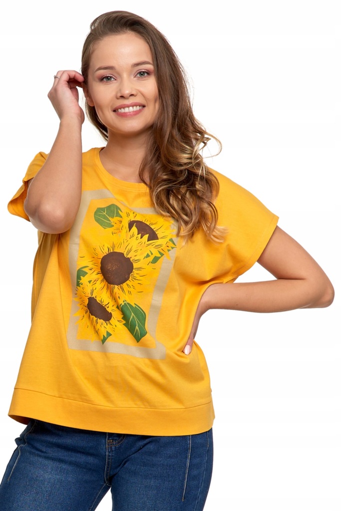 Жіноча футболка негабаритна з соняшниками-це модний та унікальний предмет гардеробу, який дасть вашим стилем нот свіжості та радості. Ця t -сорочка ідеально поєднує комфорт і свободу носіння з ефективним малюнком, створюючи привабливе пропозицію для жінок.