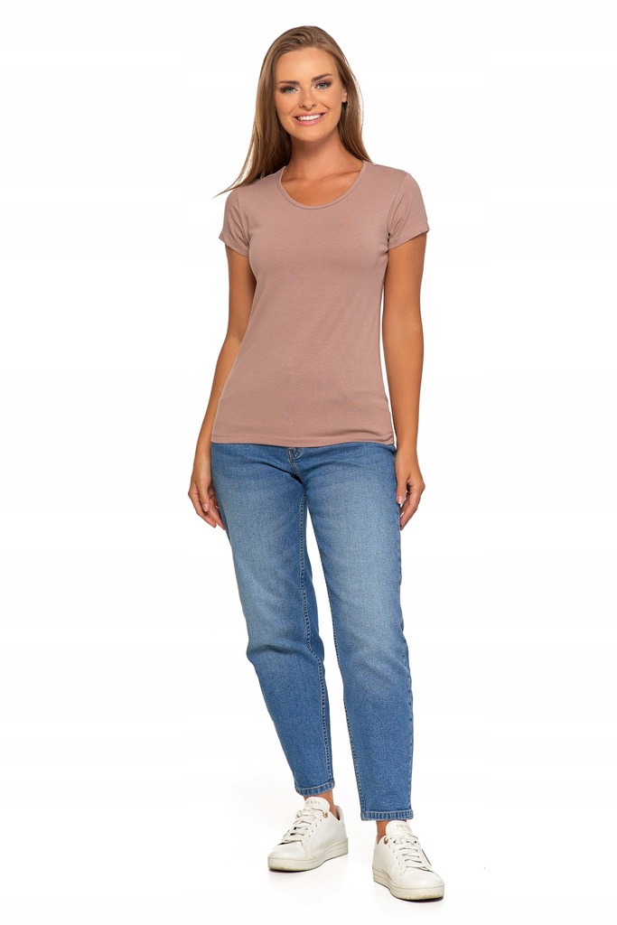 Звичайна жіноча бавовняна футболка з короткими рукавами з колекції BASIC — ідеальна пропозиція для жінок, які цінують комфорт і простоту. Виготовлений з високоякісної м'якої бавовни, що забезпечує високий комфорт при носінні та хороший повітропроникність. Простий, злегка приталений SLIM FIT, але водночас елегантний крій робить футболку ідеальною як для повсякденного, так і для офіційного стилю. Короткий рукав надає футболці легкість і свободу рухів, що особливо важливо в спекотні дні. Класичний круглий виріз горловини дозволяє легко поєднувати такі аксесуари, як шарфи або намиста. Жіноча однотонна бавовняна футболка з коротким рукавом – це позачасова пропозиція, яка неодмінно знайде своє місце в гардеробі кожної жінки.