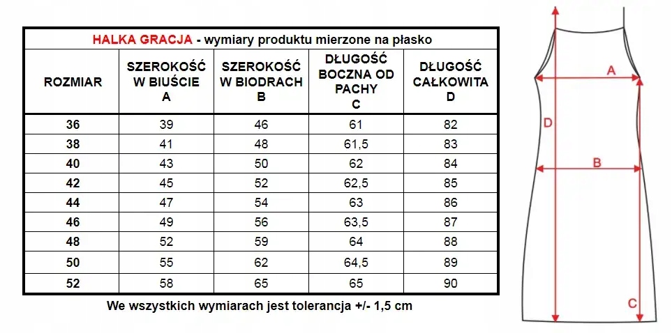 Gracja Halkaтакож ідеально підходить як зручна нічна сорочка. Він доступний у багатьох кольорах, від розміру 36 до 52.
