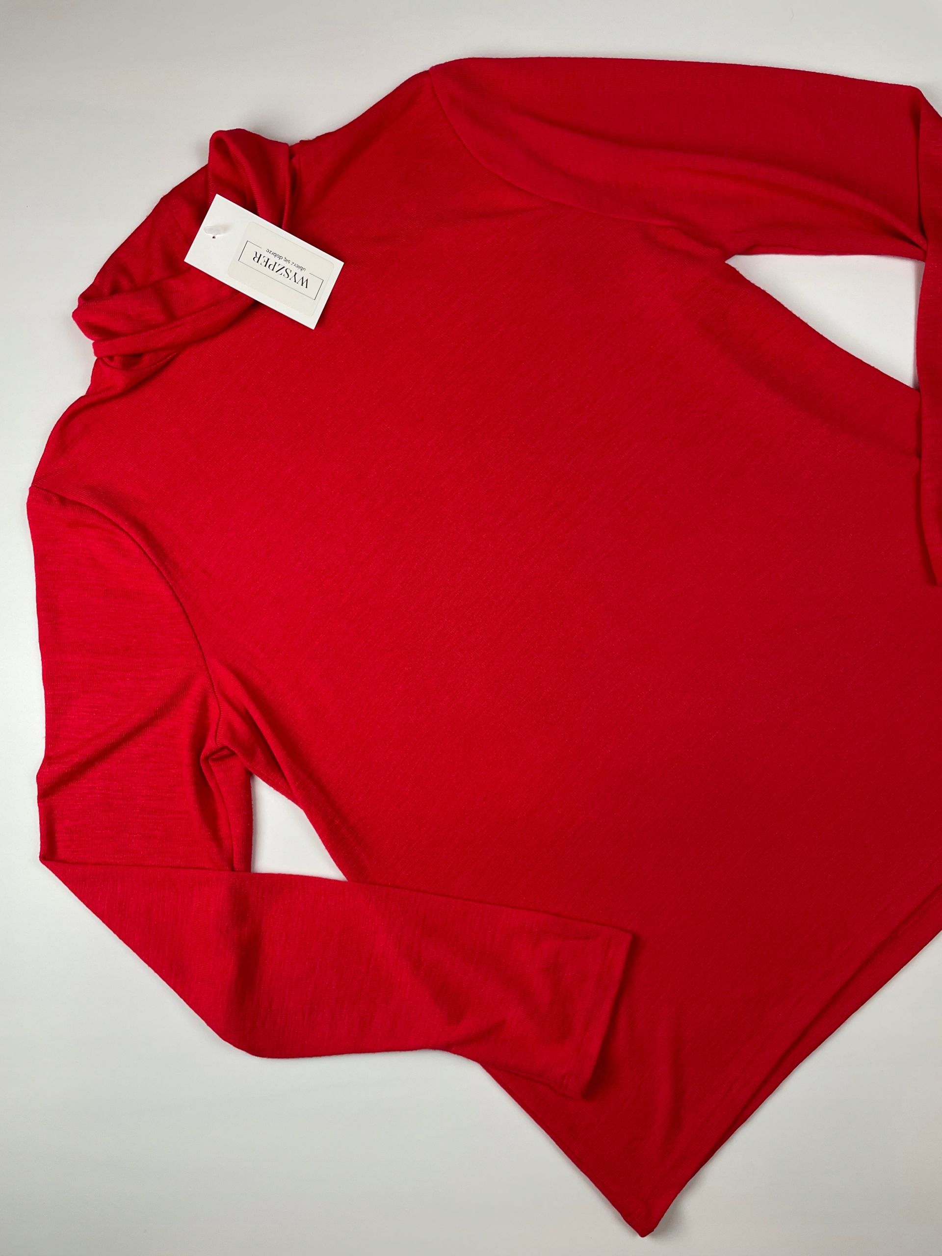 - Дуже приємний жіночий Гольгік у модному, червоному кольорі. У ньому класичний простий зріз і довгі рукави. На наш погляд, це виглядає красиво.