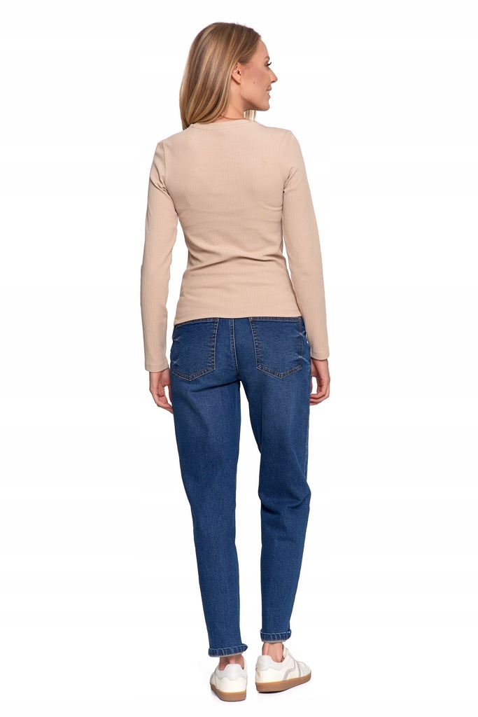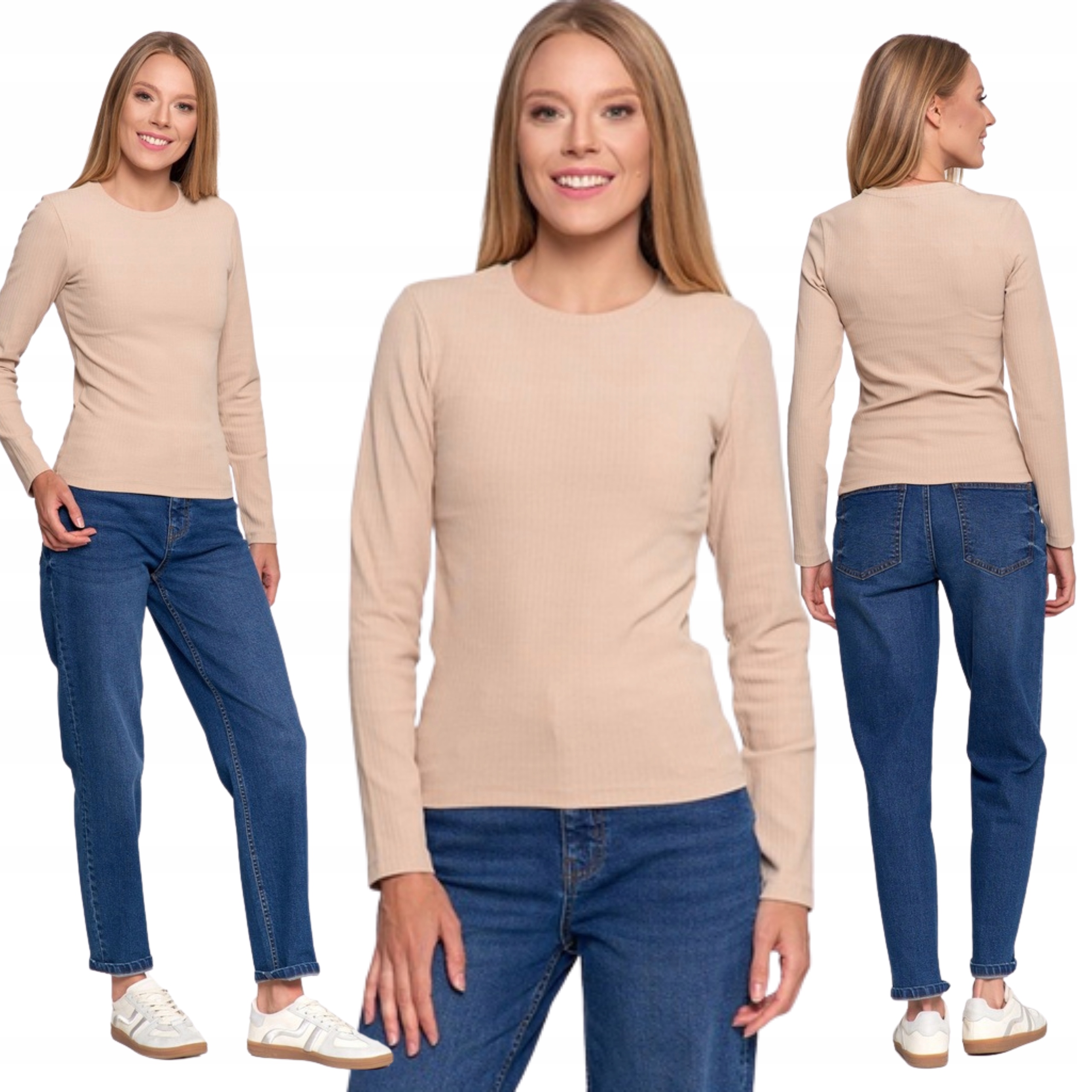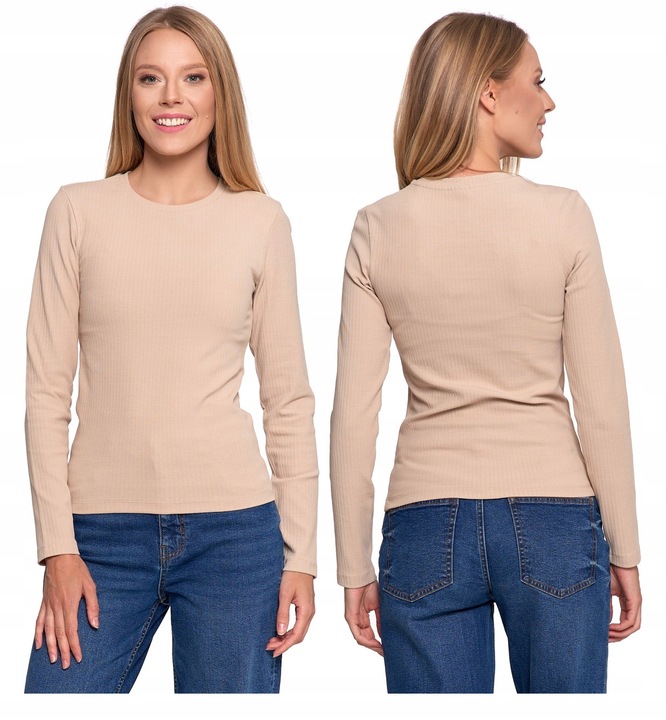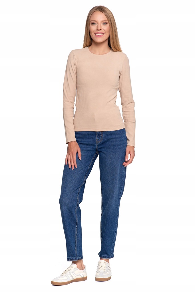 Жіноча блуза в рубчик з довгим рукавом - бежева