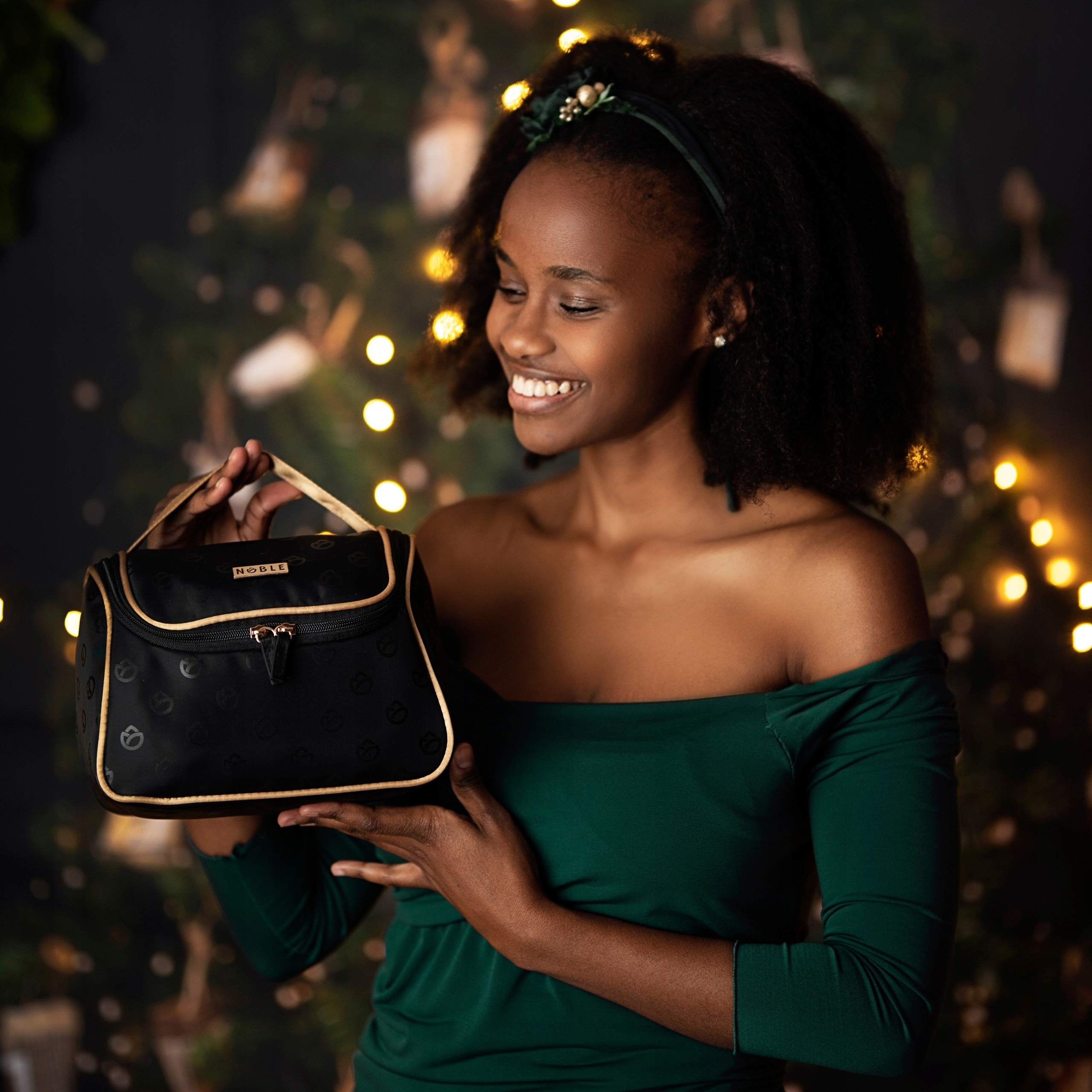 Естетична чорна коробка компанії з логотипом NOBLE®. Кожен набір косметички, упакований в нашу коробку, отримає додаткову цінність завдяки ексклюзивному оформленню. Ідеальний подарунок.