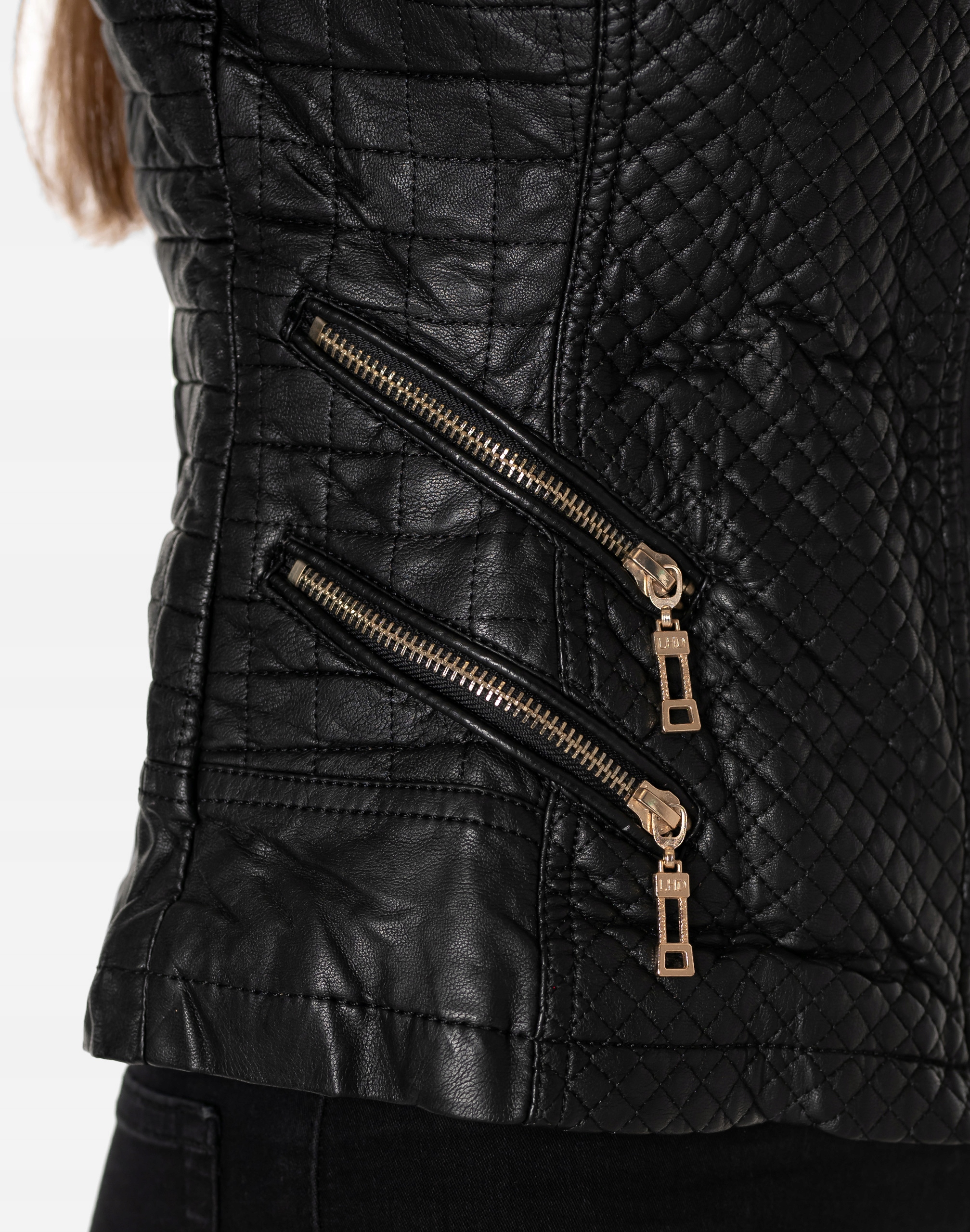 Культова жіноча куртка Ramones з дуже м'якої екологічної шкіри "Black Magic", що нагадує натуральну шкіру. Повністю застібається на блискавку YKK з коміром-стійкою. Комір-стійка, оброблений застібкою з привабливою пряжкою та кнопками. Декоративні блискавки також закривають три кишені для рук з боків куртки. Зсередини куртка оброблена стьобаною підкладкою. Акуратно підкреслена талія, ідеально профільована конструкція ефектно підкреслює жіночу фігуру. Декоративні металеві блискавки, характерні для курток Ramones, ідеально підкреслять авангардний характер будь-якого, здавалося б, звичайного стилю. Ідеальна пропозиція для весни та осені та для прохолодних літніх вечорів.