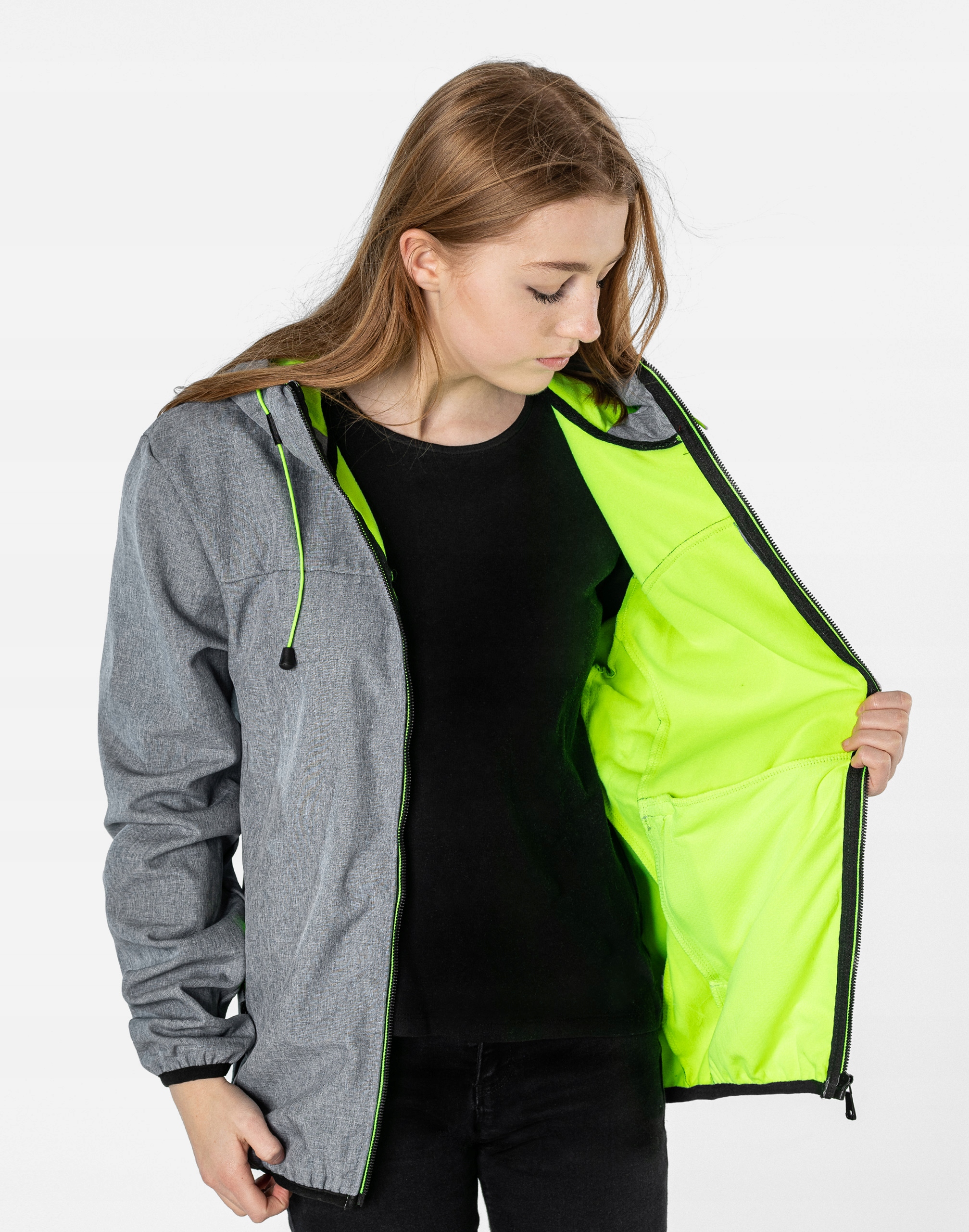 - Капюшон: вбудований, утеплений мікрофлісом, регулюється за допомогою шнурка