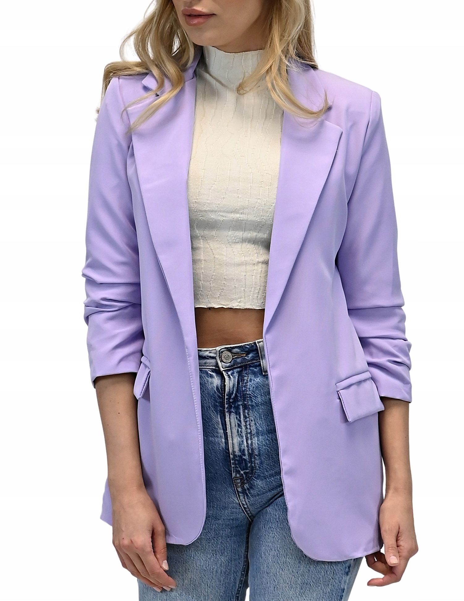Довша модель смокінг підходить для елегантний і повсякденний стиль. Ідеально доповнить ваш образ на роботу, в університет або вечірній вихід. Драпіровані рукави довжиною 3/4 додають оригінальний характер. Дві кишені з боків з привабливими клапанами роблять куртку красивішою. Вільного крою, з підкладкою та м’якими наплічниками.