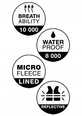 Виготовлена з високоякісного матеріалу - поліестер (94 % ) і еластан (6%), що забезпечує захист від холоду та вологи. Підкладка з мікрофлісу захищає від холоду під час походів і прогулянок.