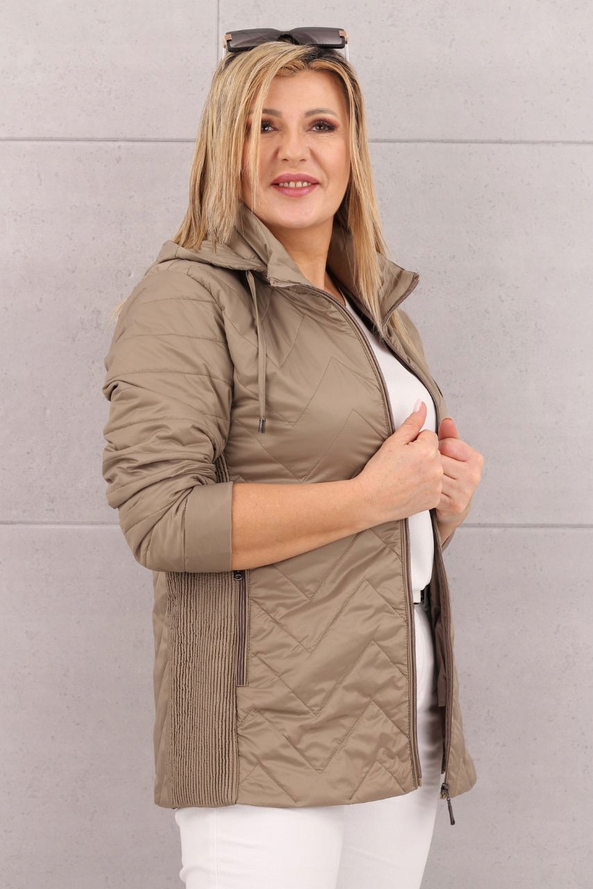 Ця стильна жіноча куртка ідеально підходить для перехідного сезону. Відрізняється декоративною еластичною гумкою з боків, що додає не тільки естетичності, але і функціональності, краще облягаючи фігуру. Завдяки практичним кишеням і знімному капюшону, який можна затягнути зав’язками, він є не тільки практичним, але й модним доповненням до багатьох стилів. Ретельно оброблені деталі надають йому елегантності та характеру, що робить цю куртку ідеальним вибором для різних випадків.