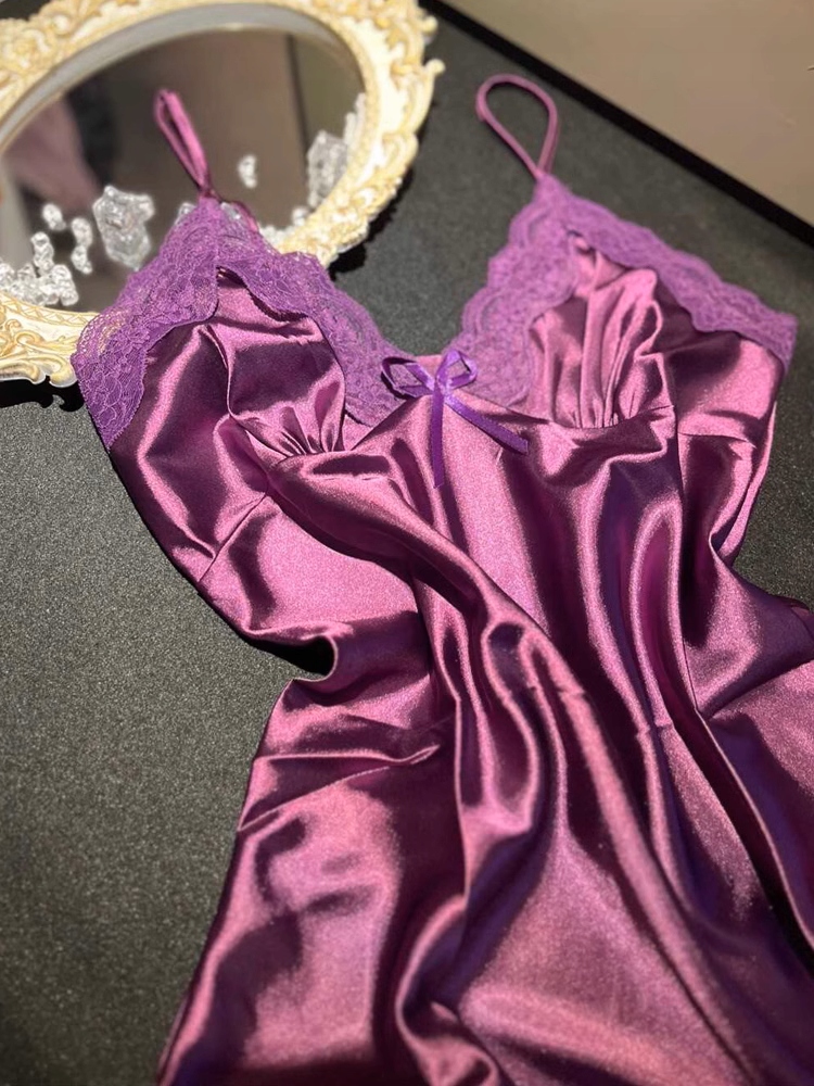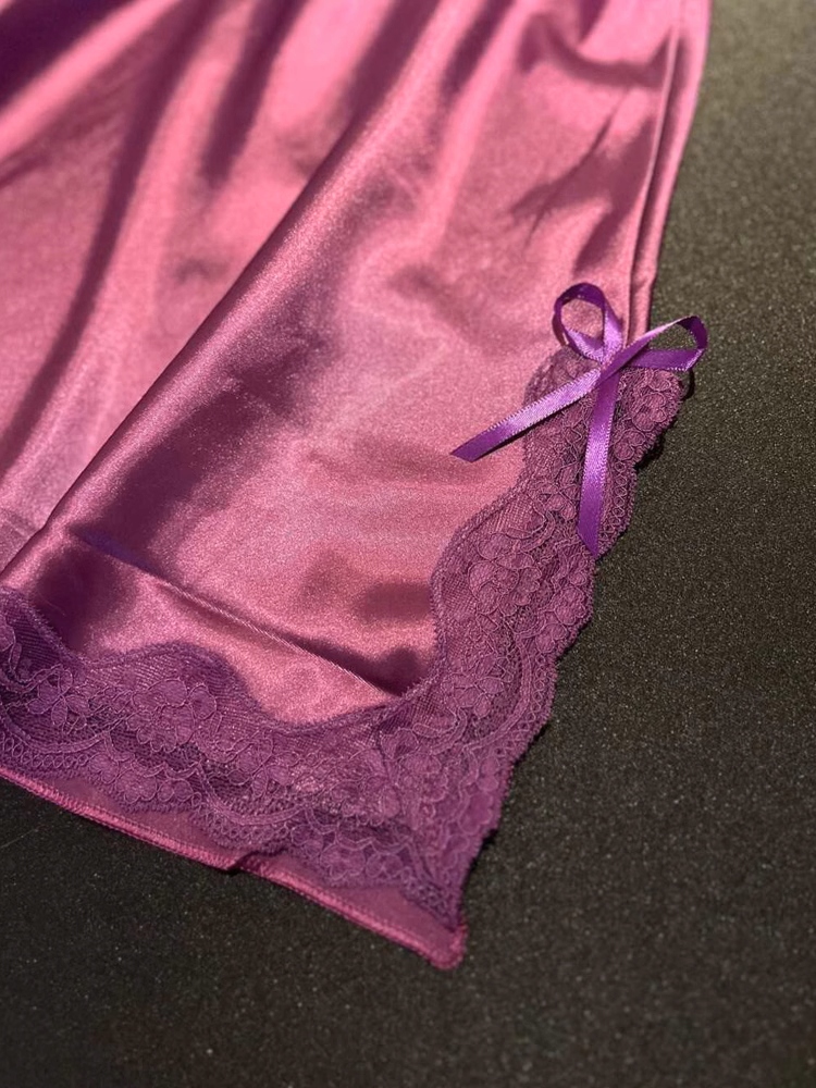 Відчуйте себе особливою в цій чуттєвій атласній нічній сорочці. Ніжний матеріал обіймає ваше тіло, а мереживні деталі додадуть елегантності. Регульовані бретелі та еластична лямка під бюстом забезпечать ідеальну посадку, а розріз з боків додасть тонкого шарму. Ідеально підходить для жінок, які цінують поєднання комфорту та елегантності.