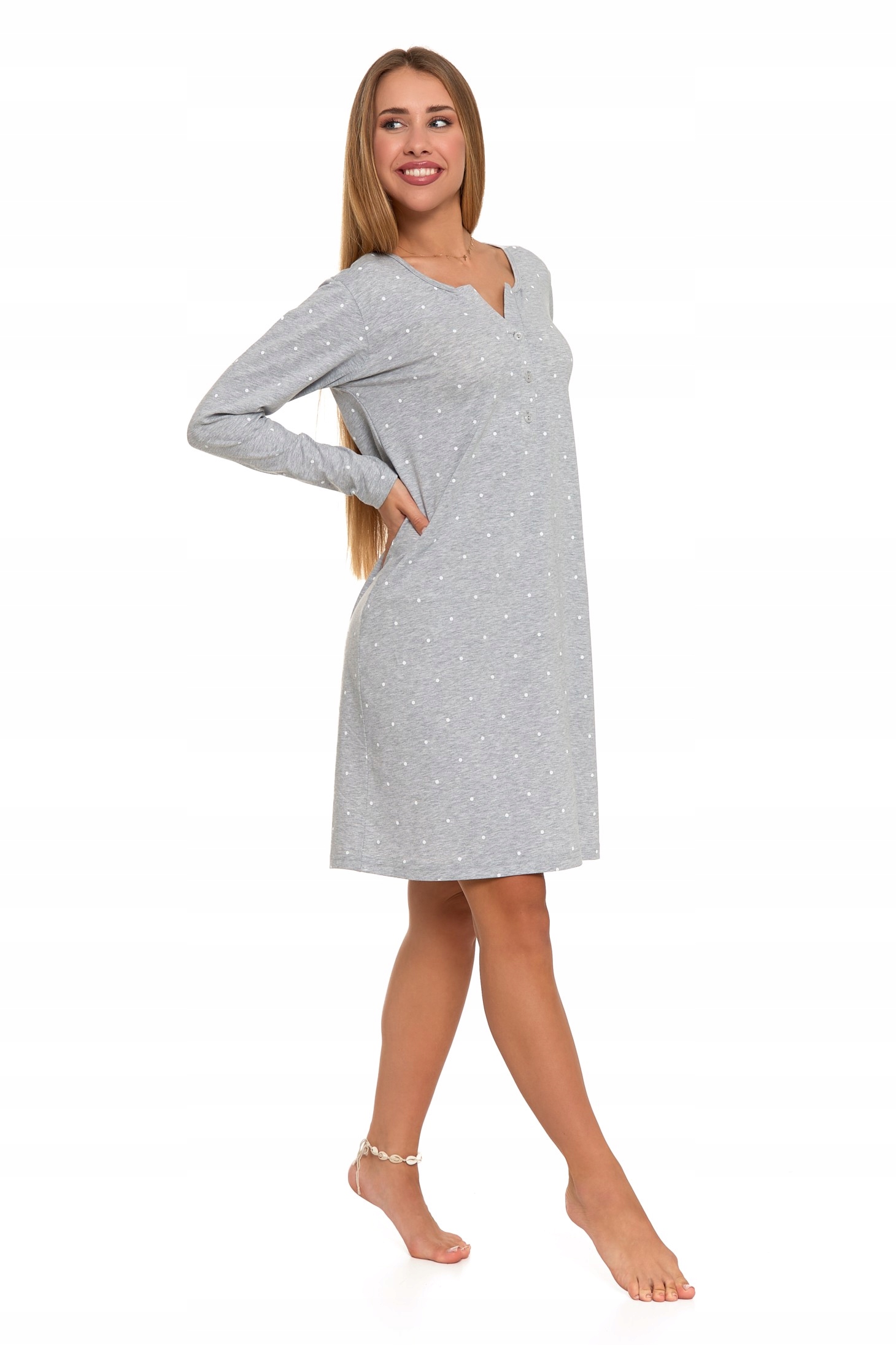 Дизайн на блискавці: оснащений практичним ґудзиком, який полегшує одягання та знімання нічної сорочки.
