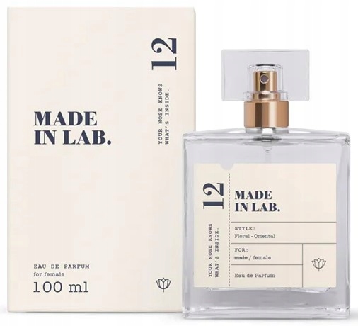 Made in Lab 12 — це легка квіткова композиція, яка нагадує теплий весняний ранок. Тепло, але не жарко. Гарно, але з вітром. Ви відчуваєте запах квітів, але це не дуже солодко. Розпорошите, і ви приєднаєтесь до танцю білих квітів. Він ідеально підійде до білої сорочки для офісу або повітряної сукні, яку ви швиденько одягнете, виходячи з дому. Замислений, закоханий, божевільний. Це ви і ваш аромат 12.