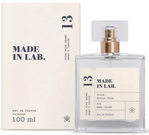 Комппозиція східна. Ви відчуєте танець червоних, набряклих і соковитих фруктів: малини, граната, маракуї. ноти серця: Лотос і Орхідея; Зелені ноти з часом поступляться місцем амбре, ванілі та пачулі. Made In Lab 13 — безперечно сексуальна пропозиція для жінки, яка любить спокушати. Він чарівний, трохи таємничий, звабливий.