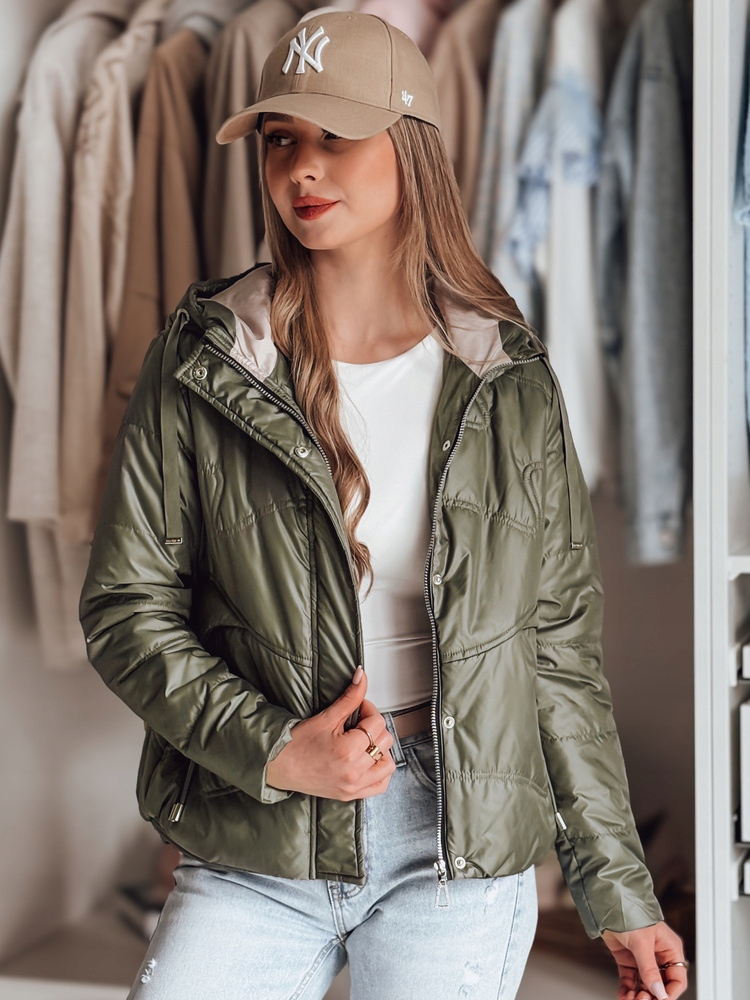 Жіноча перехідна стьобана куртка з капюшоном NIVESSO зелена Dstreet TY485