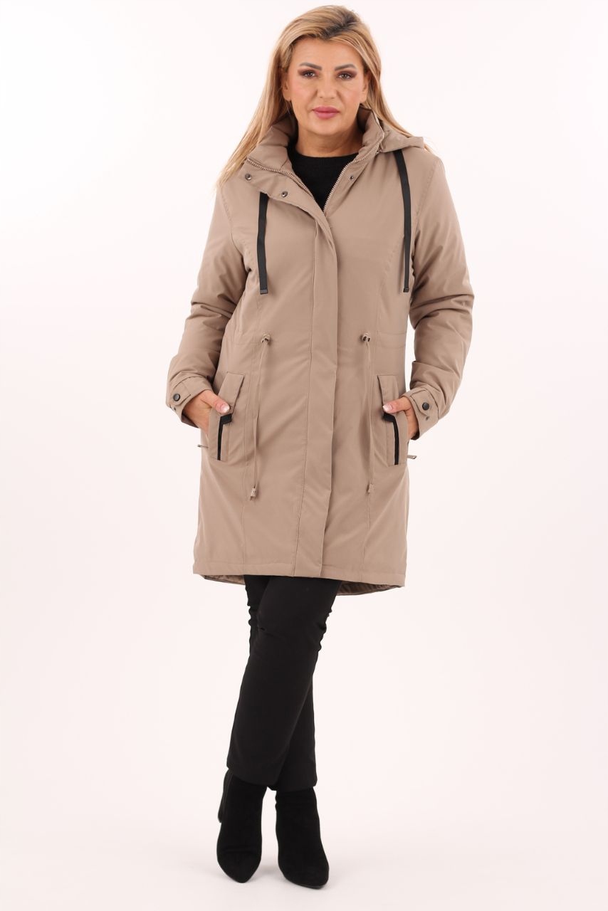 ЖІНОЧА ПЕРЕХІДНА ТЕПЛА КУРТКА ВЕЛИКОГО РОЗМІРУ З КАПЮШОНОМ