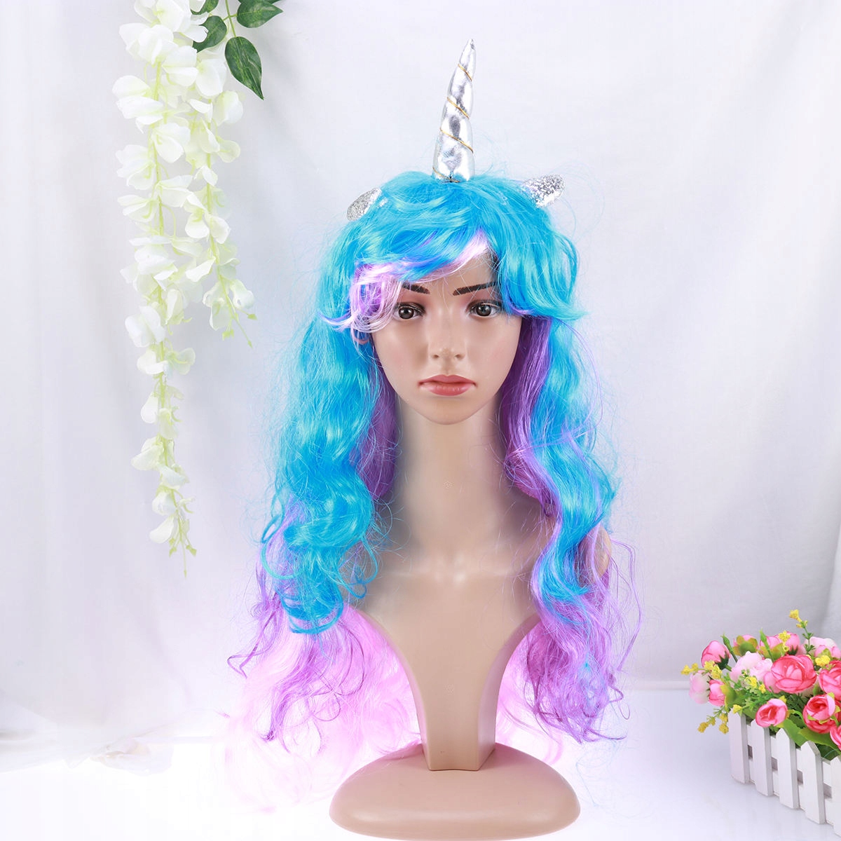 ЖІНОЧА ПЕРУКА З ВЕСЕЛКОВИМ ЄДИНОРОГОМ ДОВГІ КУЧЕРЯВІ ПЕРУКИ ПАРТІЙНИЙ КОСПЛЕЙ ПІДХОДИТЬ ДІТЯМ, ДІВЧАТАМ, TE