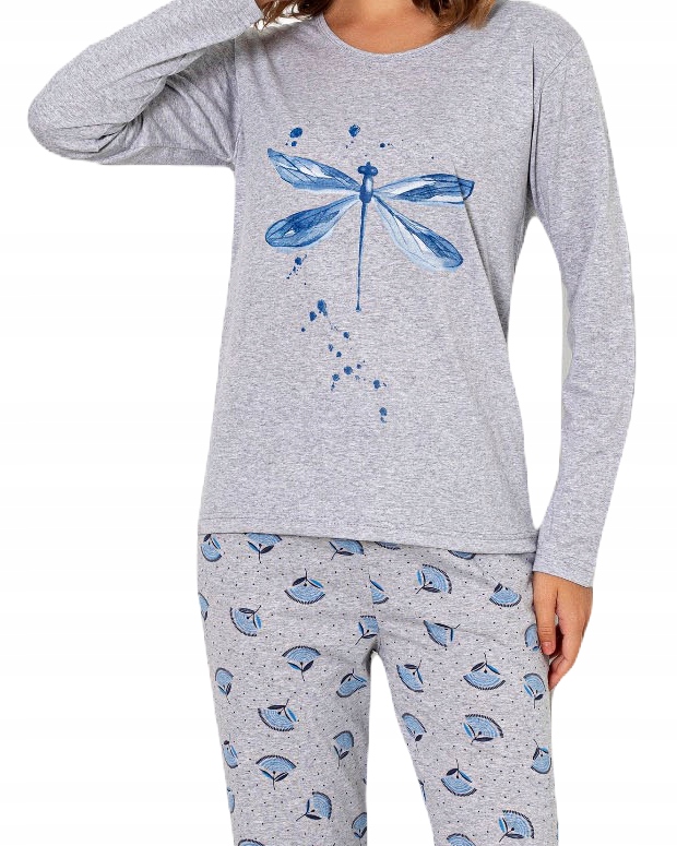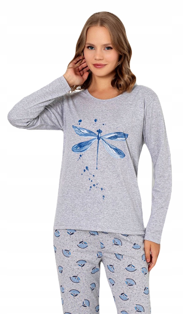 Футболка з довгими рукавами, декольте оздоблено окантовкою в колір штанів. Довгі штани з малюнком мають нетиснучу гумку. Піжама забезпечує високий комфорт при носінні вдень і під час сну. Купуючи цей товар, ви можете бути впевнені, що він найвищої якості. У наших стаціонарних магазинах ці піжами дуже задоволені покупцями. Рекомендуємо.