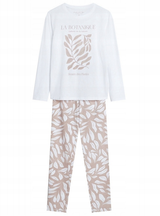 ЖІНОЧА ПІЖАМА HENDERSON COTTON З ДОВГИМ РУКАВОМ БІЛА БЕЖЕВА DEXTRA L