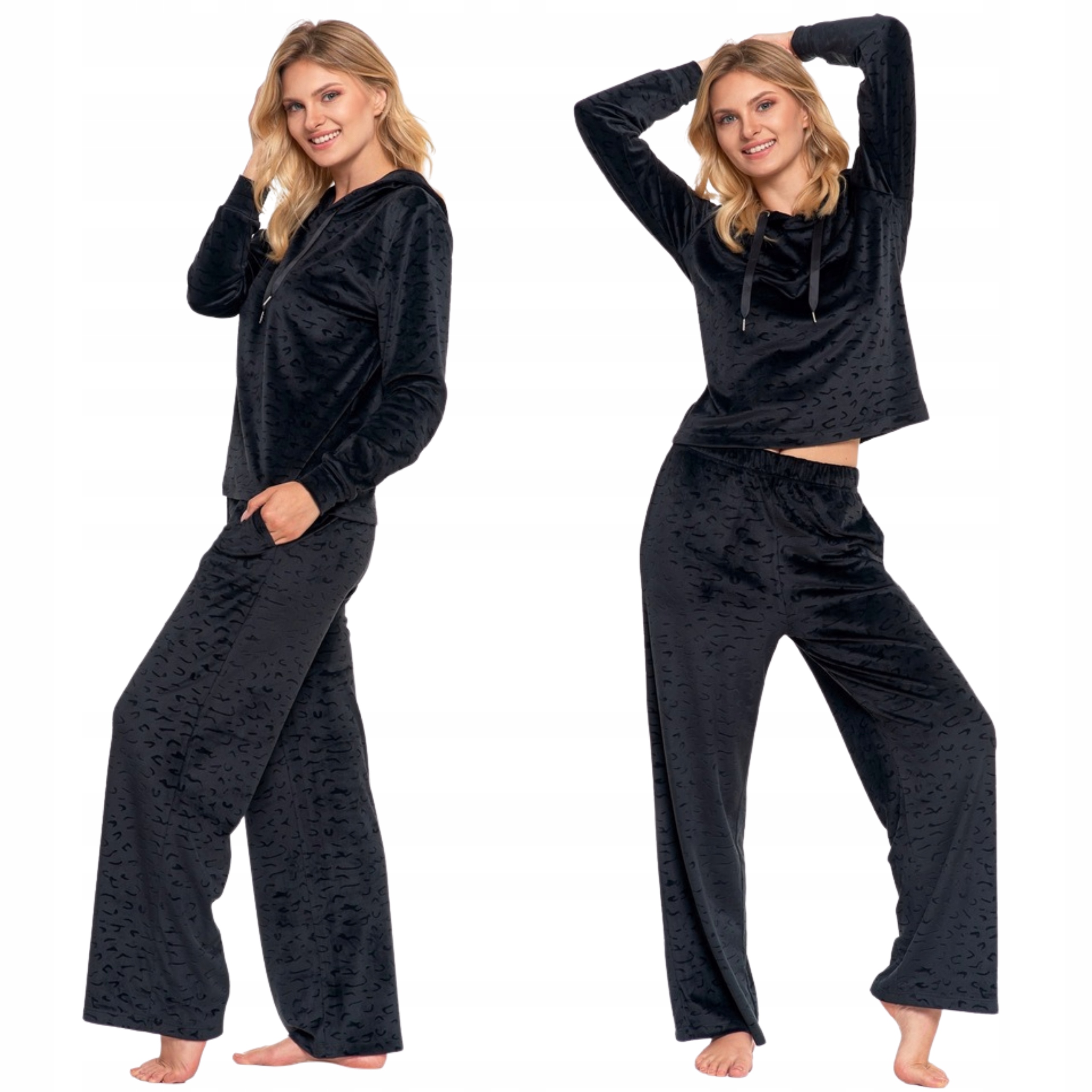Жіноча піжама з довгим рукавом з довгим рукавом, утеплений сипучим розрізом з капюшоном чорний l