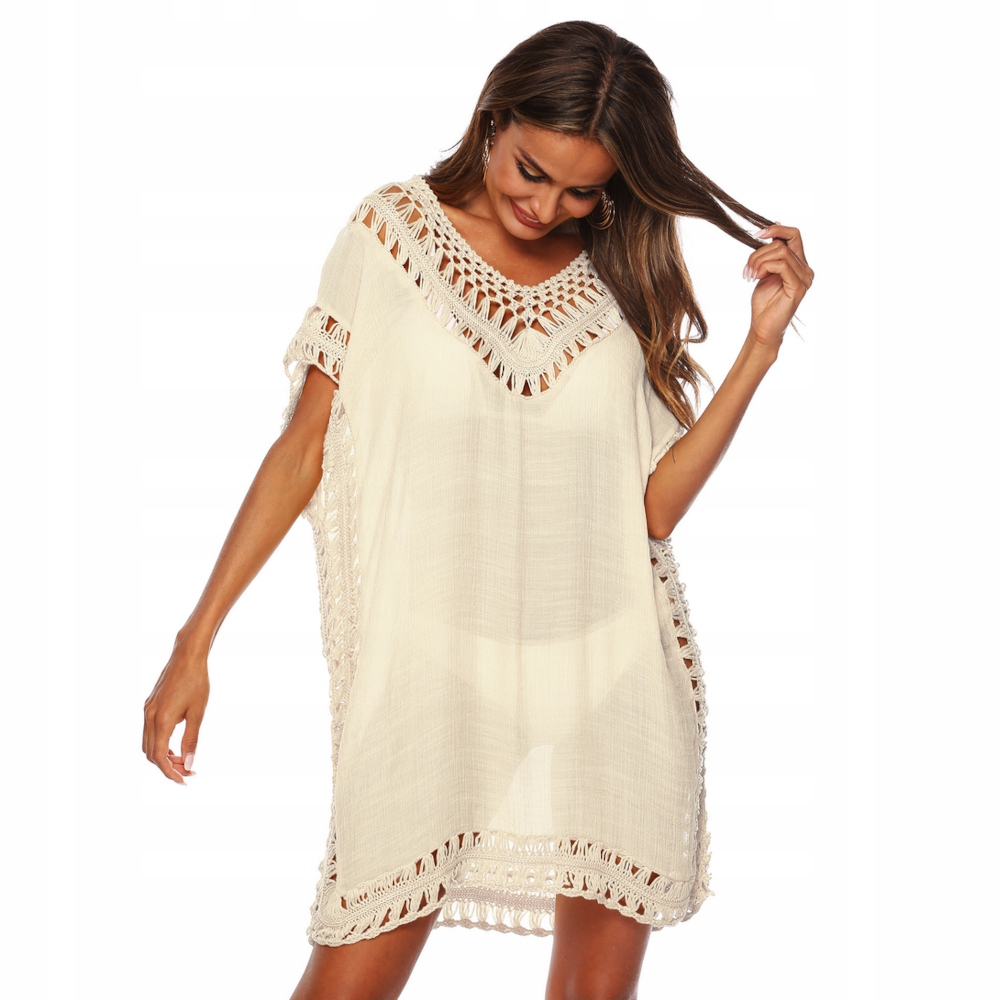 ЖІНОЧА ПЛЯЖНА ТУНІКА МОДНА ПОКРИВКА СВІТЛЕ ЛІТО БОХО ПАРЕО КРЕМОВИЙ