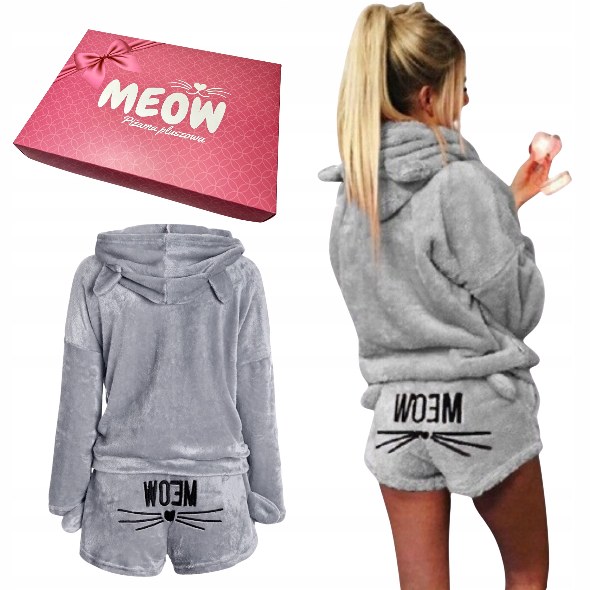 Жіноча ПЛЮШЕВА ПІЖАМА З ДВІХ ЧАСТИН МЯУ КОТ КОМПЛЕКТ Подарунковий М