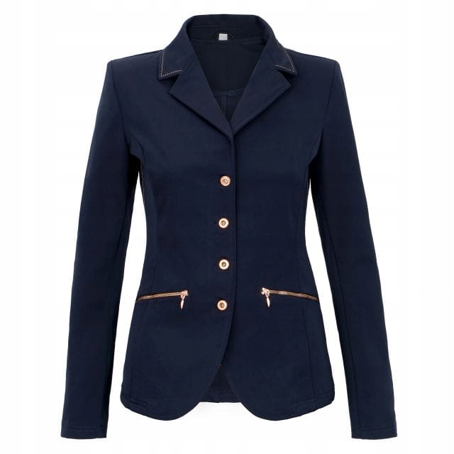 Елегантний, приталений і дуже гнучкий фрак застібається на блискавку і красиві гудзики кольору рожевого золота з вбудованими частинками блиску. Крім того, декоративні блискавки та шви рожевого золота.