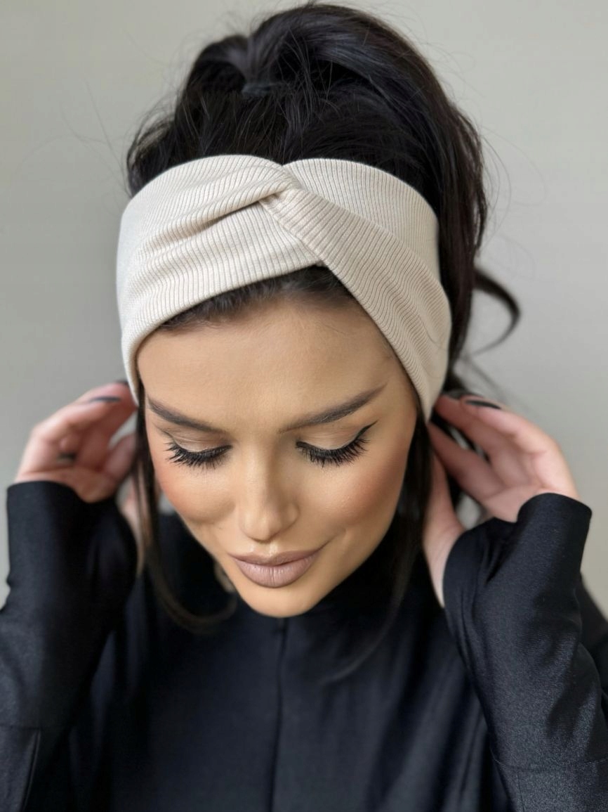 Жіноча пов'язка на вухах Тонке світло комфортно переплетення кремового.