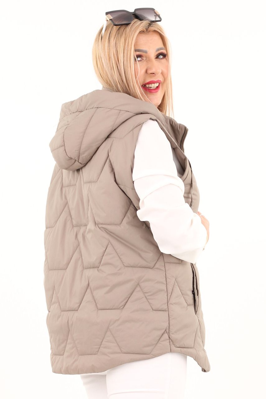 ЖІНОЧА ПРОЗОРА ЖИЛЕТКА З КАПЮШОНОМ ВЕЛИКИХ РОЗМІРІВ СТЬГАНА