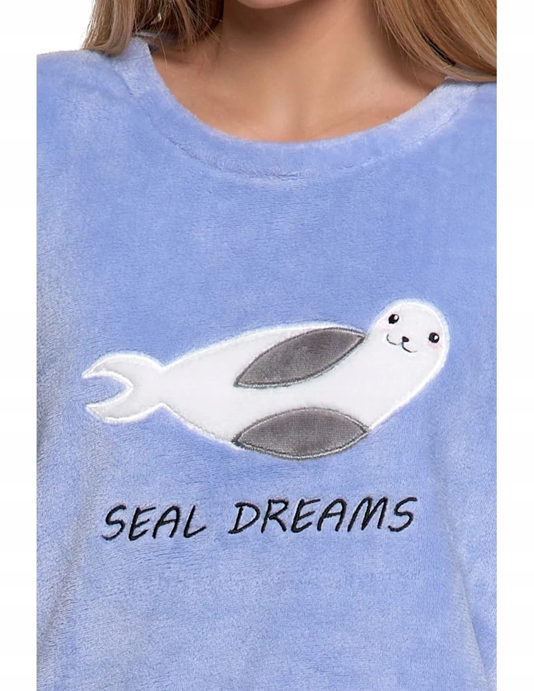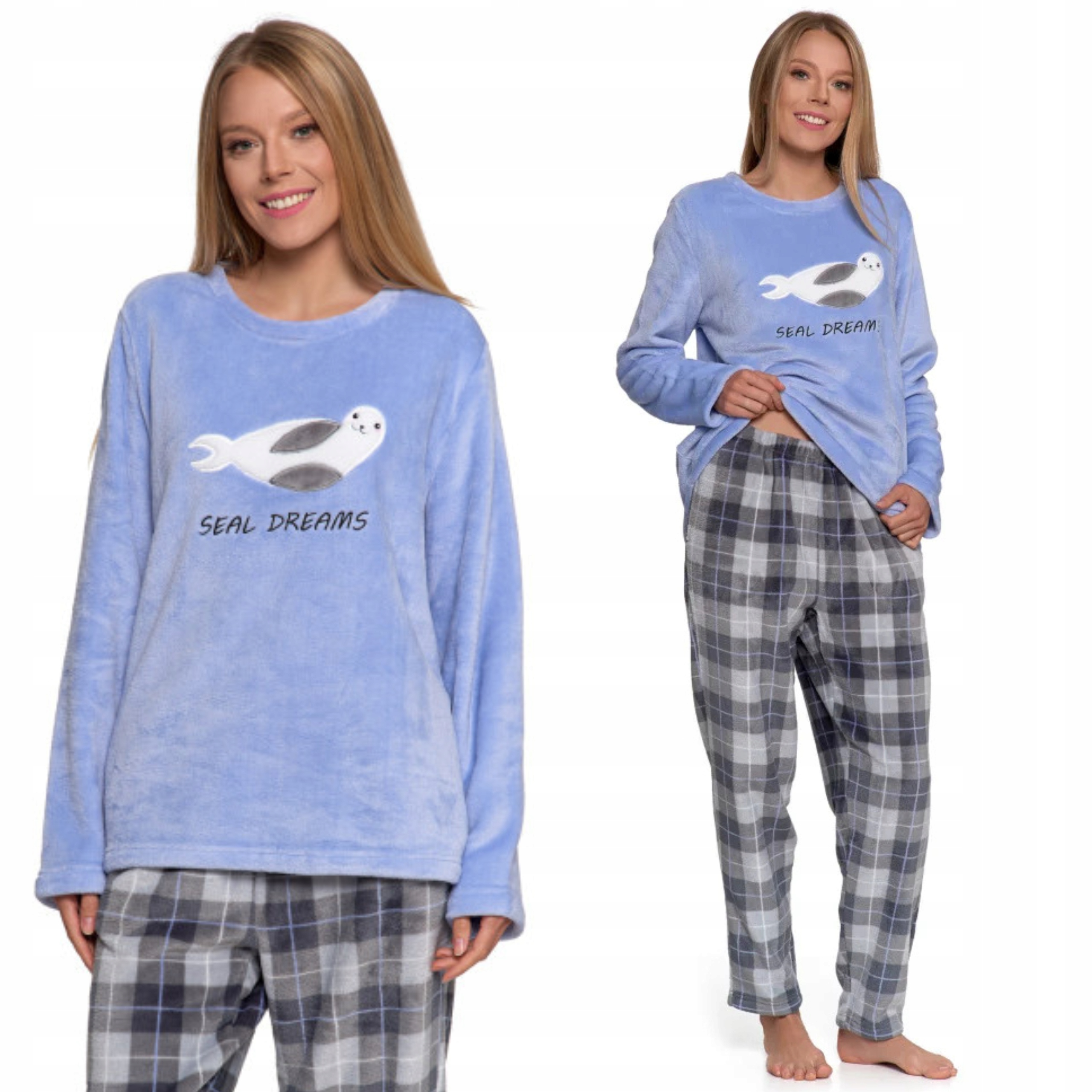 ЖІНОЧА ПУХНАТА ФЛІСОВА ПІЖАМА MORAJ Синя з печаткою Розмір L