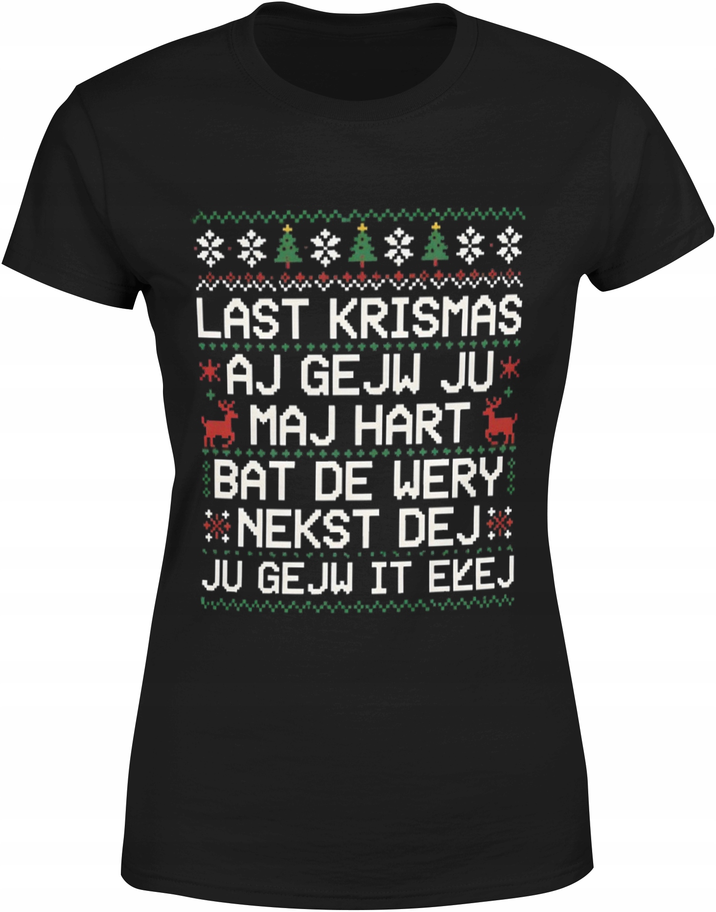 ЖІНОЧА ФУТБОЛКА РІЗДВЯНИЙ ПРИНТ LAST KRISMAS AJ GEJIU JU MAJ HART CHRISTMAS