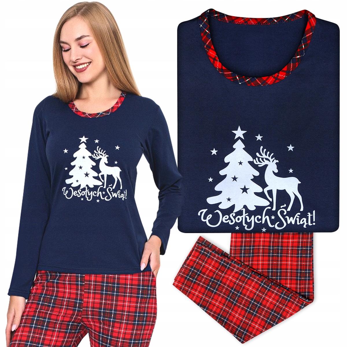 ЖІНОЧА РІЗДВЯНА ПІЖАМА З БАВОВНИ, ДОВГИЙ РУКАВ, ПОЛЬСЬКИЙ НАПИС MERRY CHRISTMAS