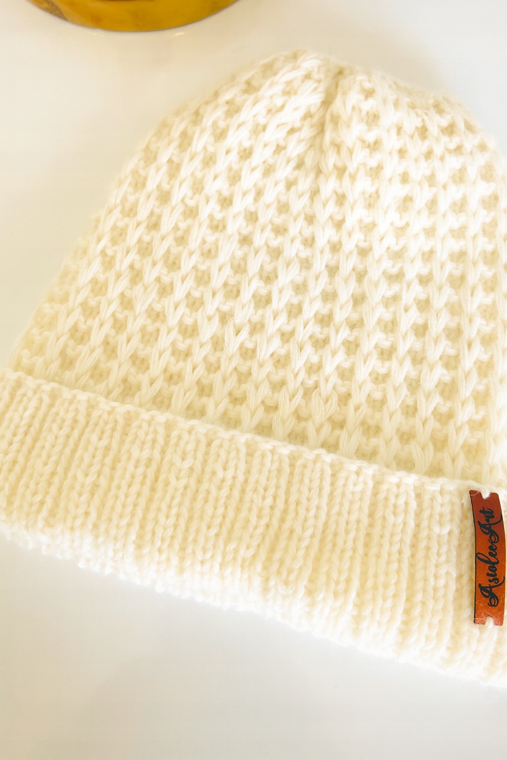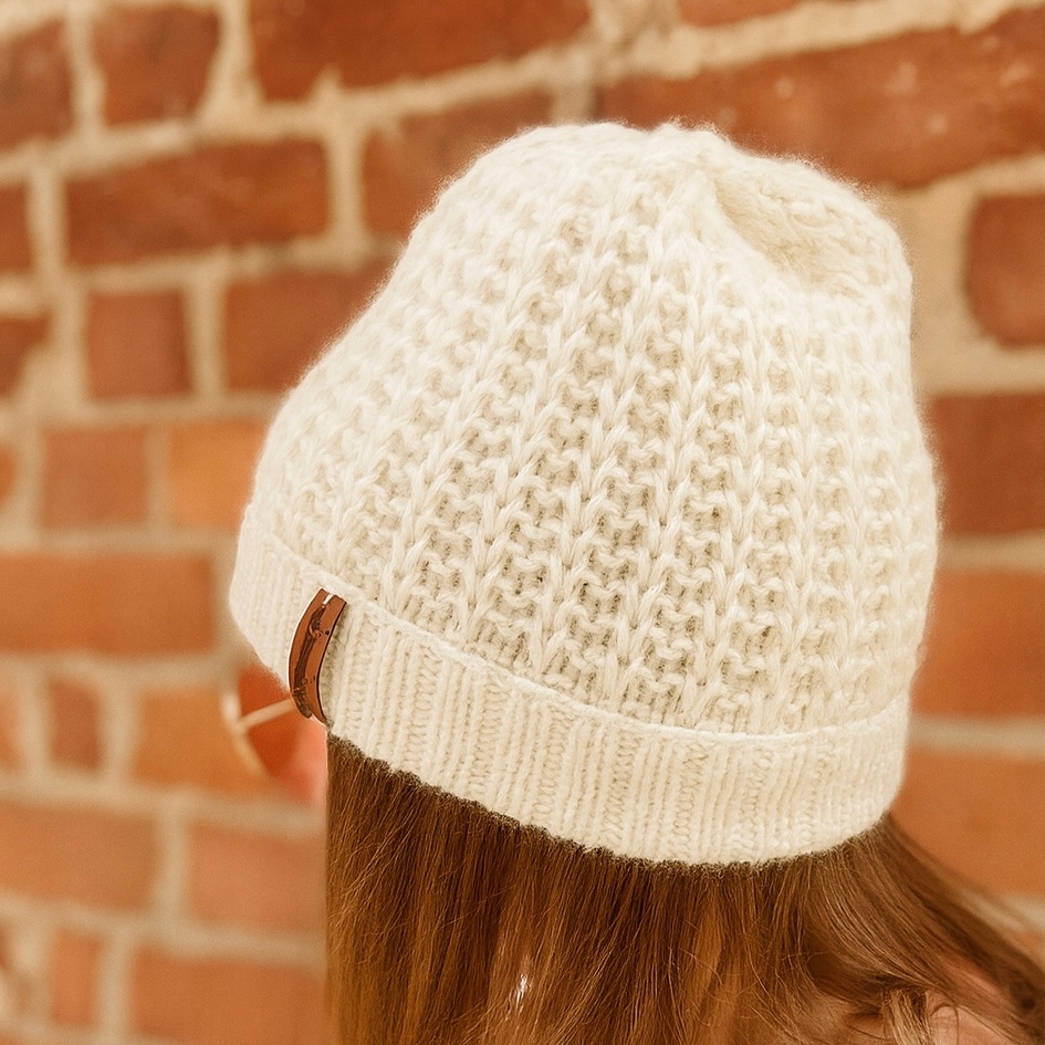 Жіноча шапка зі 100% кашеміру М'яка і тепла -Ручна робота-БІЛА