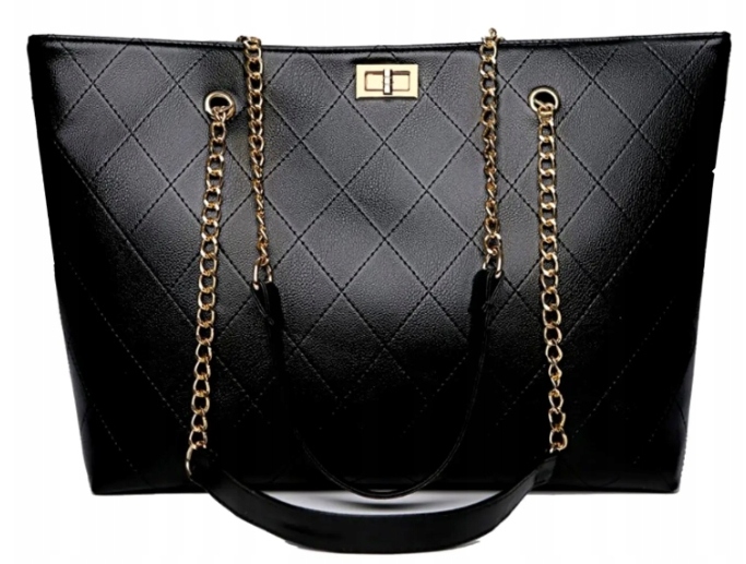 Жіноча велика сумка через плече, шкіряна, на місткому ланцюжку - це елегантність і стиль на кожен день. Цей виріб виготовлено з міцного матеріалу. екологічна шкіра і має посилений крій, в тому числі низ. Завдяки цим характеристикам ця містка жіноча сумка через плече надовго збереже свій первісний вигляд