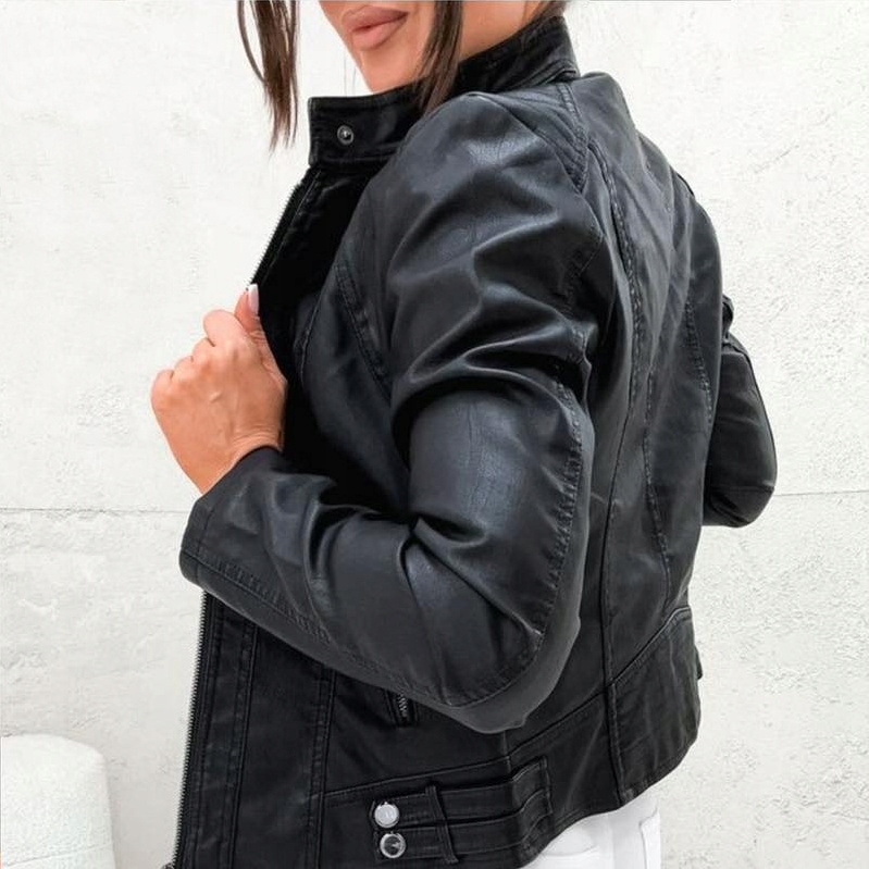 Виготовлена з високоякісної м'якої еко -лівої - Ідеальна імітація натуральної шкіри . Весь піджак на підкладці, прикріпленій суцільним металевим замком. Невдалий піджак чудово підкреслює фігуру. Пропозиції: S-XXL)