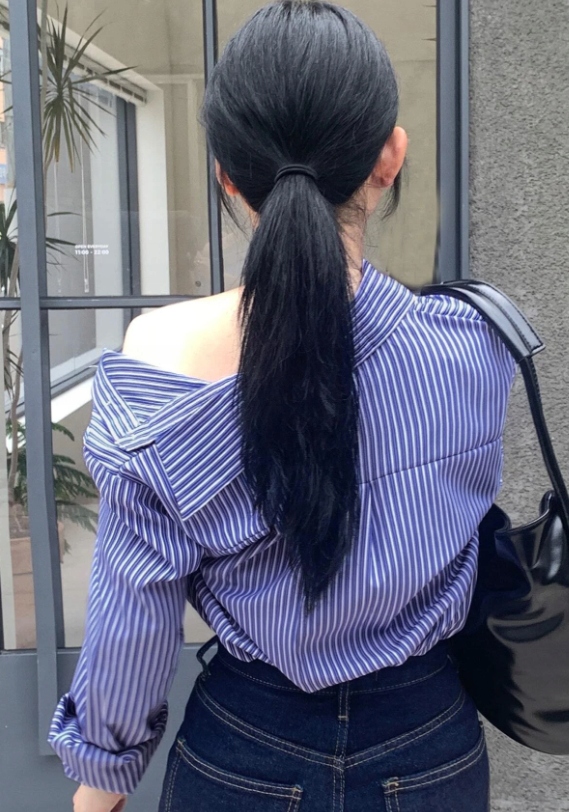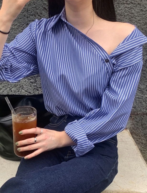 ЖІНОЧА СОРОЧКА, ТЕМНО-СИНЯ ПОВЕДЕННА В СМУЖКУ S 1VXC