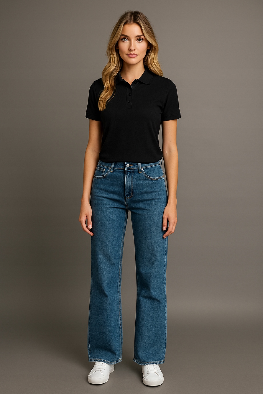 ЖІНОЧА СОРОЧКА ПОЛО - ЧОРНА - 100% БАВОВНА S