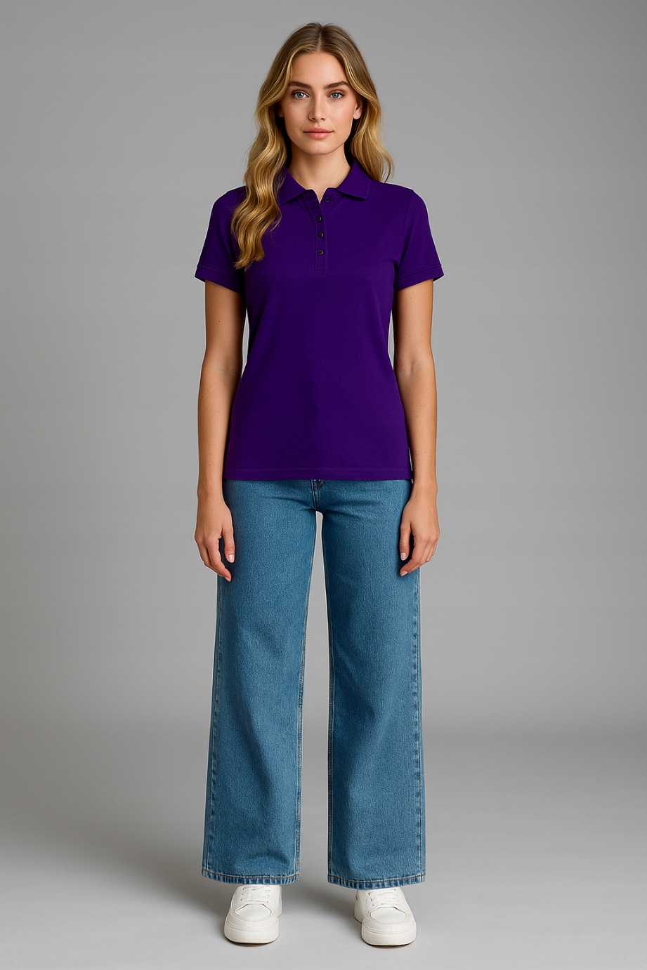 Темно-фіолетова сорочка поло — ідеальний вибір для жінок, які хочуть поєднати класичний стиль із сильним колірним акцентом. Ідеально підходить для повсякденного та офіційного стилю.