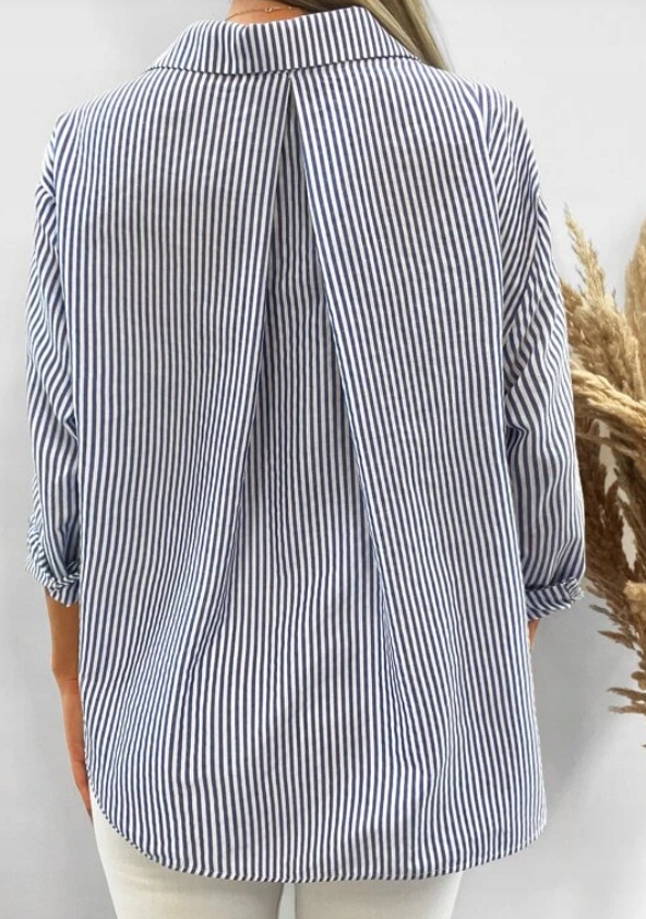 ЖІНОЧА СОРОЧКА В ПРЯМУ СМУЖКУ, СИНЯ 38 1VWA