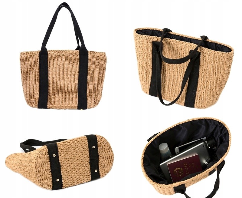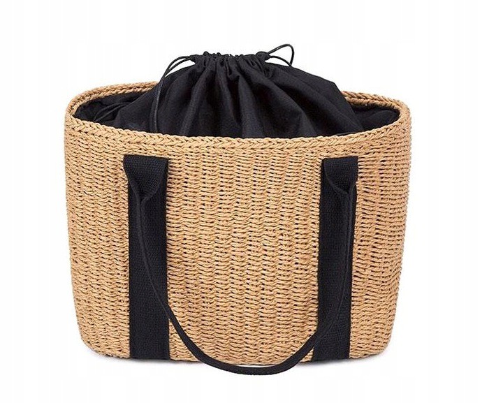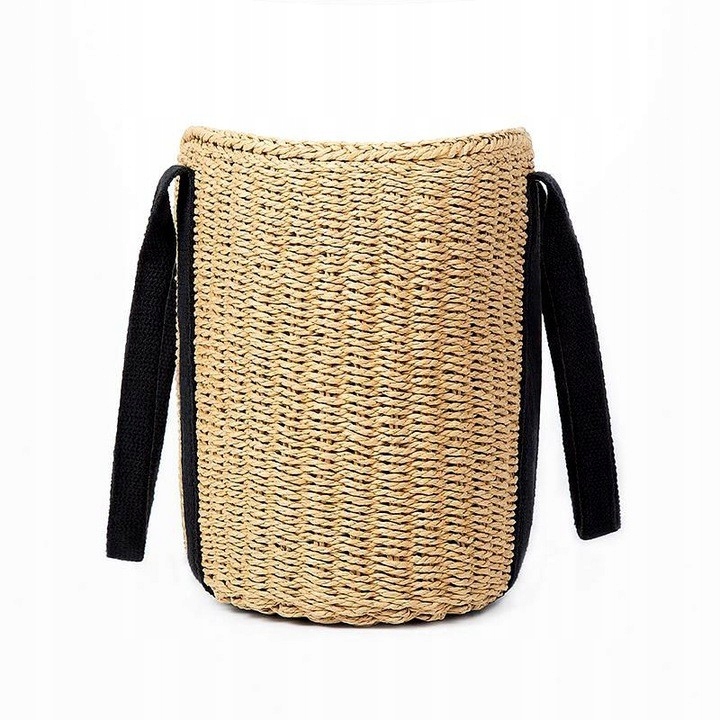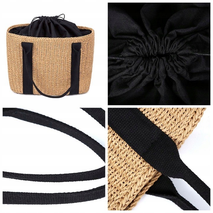 ЖІНОЧА СУМКА, СОЛОМ'ЯНА, ЧОРНІ РУЧКИ, МОДНА РАТАНА