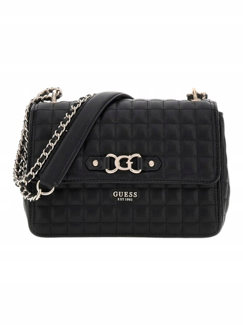 - Логотип: спереду опуклий напис «GUESS EST 1981» і літера «G», всередині сумки металевий бейдж з вигравіруваним написом «GUESS EST. 1981», на підкладці написи «GUESS», на фурнітурі вигравіруваний напис «GUESS»