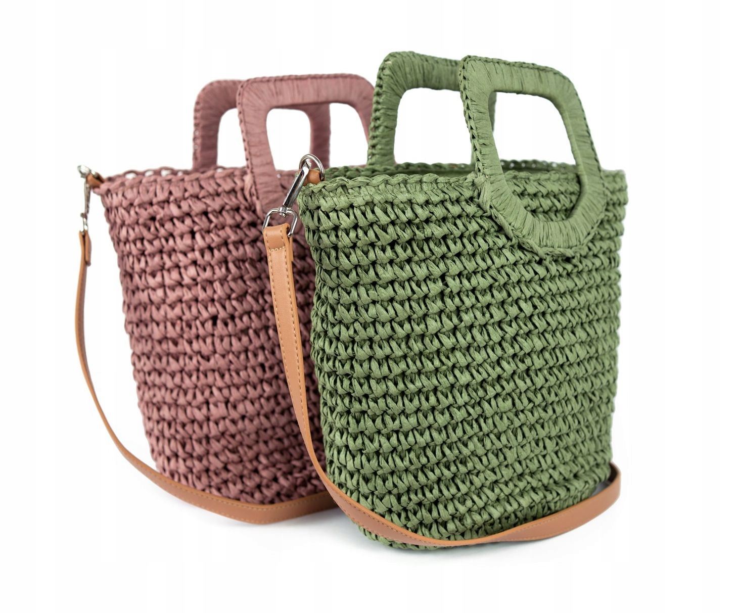 - плетена, ажурна, літня сумка з просоченого паперу, у формі кошика, вільного переплетення